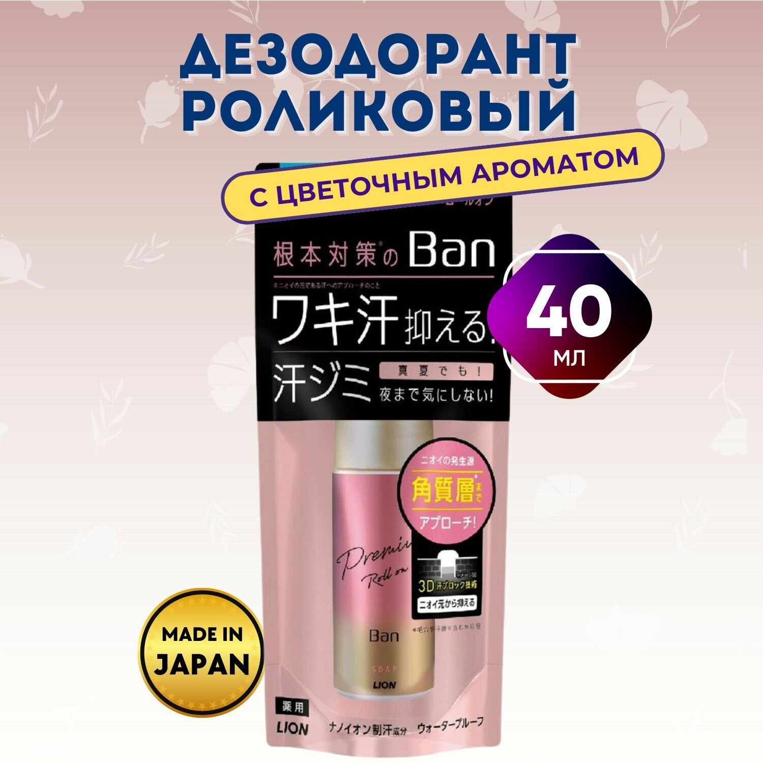 Купить LION Премиальный дезодорант-антиперспирант роликовый ионный блокирующий потоотделение "BAN Premium" (аромат мыла) 40 мл