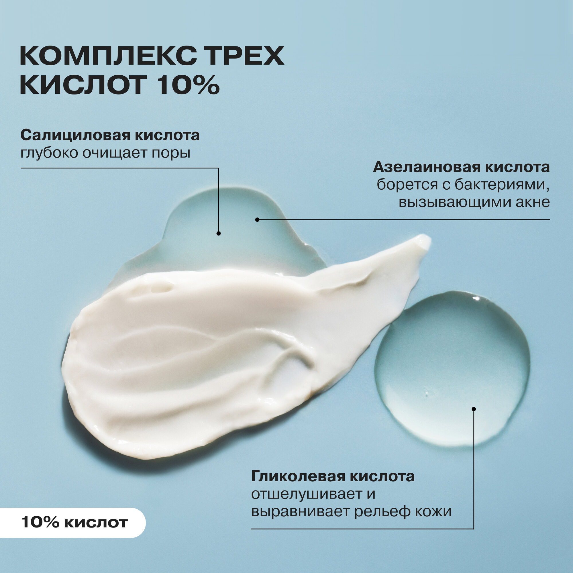 | Активный ингредиент | азелаиновая кислота / гликолевая кислота / молочная кислота / пантенол (провитамин B5) / салициловая кислота / цинк |