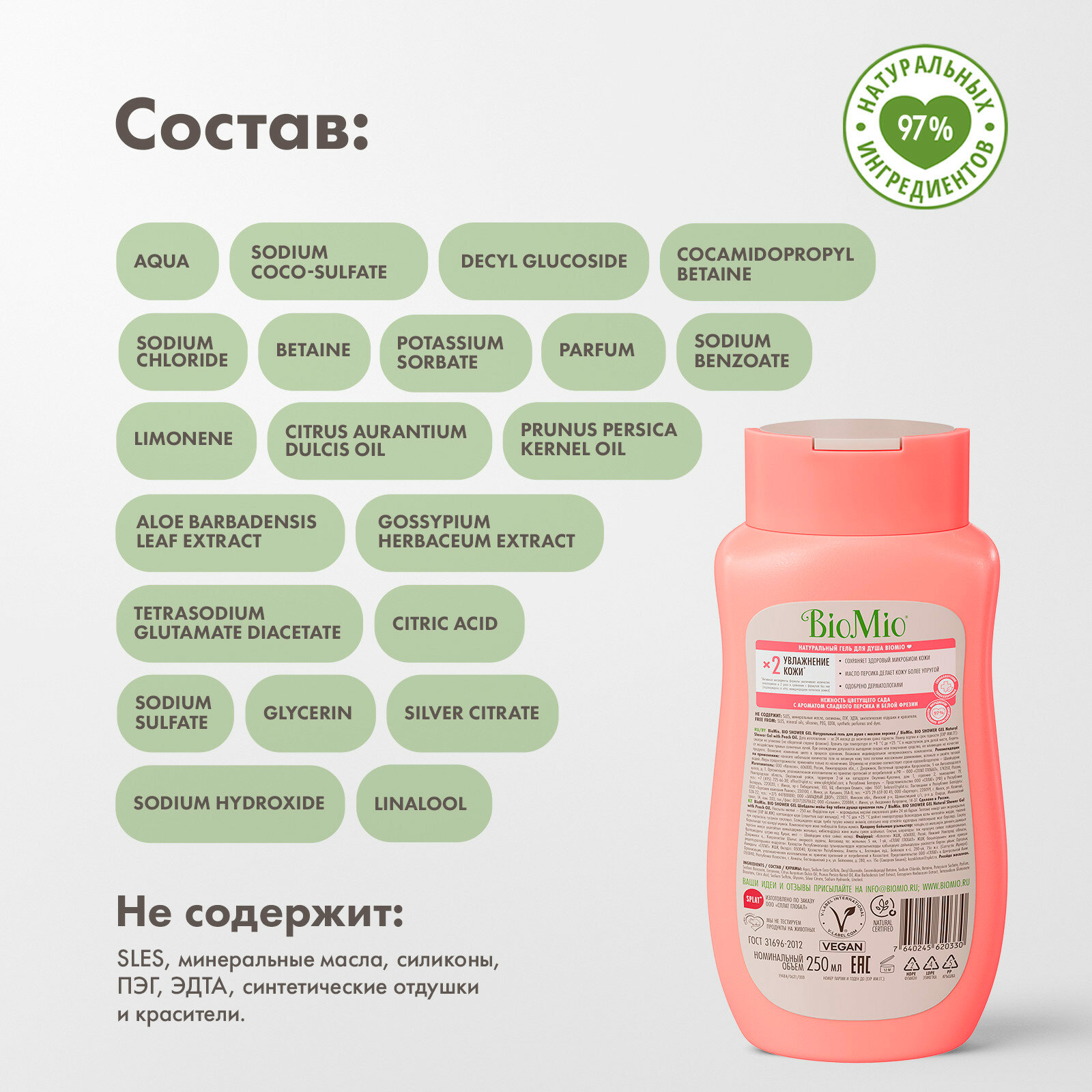 Гель для душа BioMio с ароматом персика и фрезии, 2х250 мл интересное: