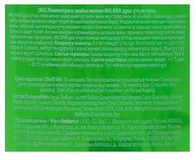 Milana гель для душа Бодрящая свежесть с маслом лемонграсса