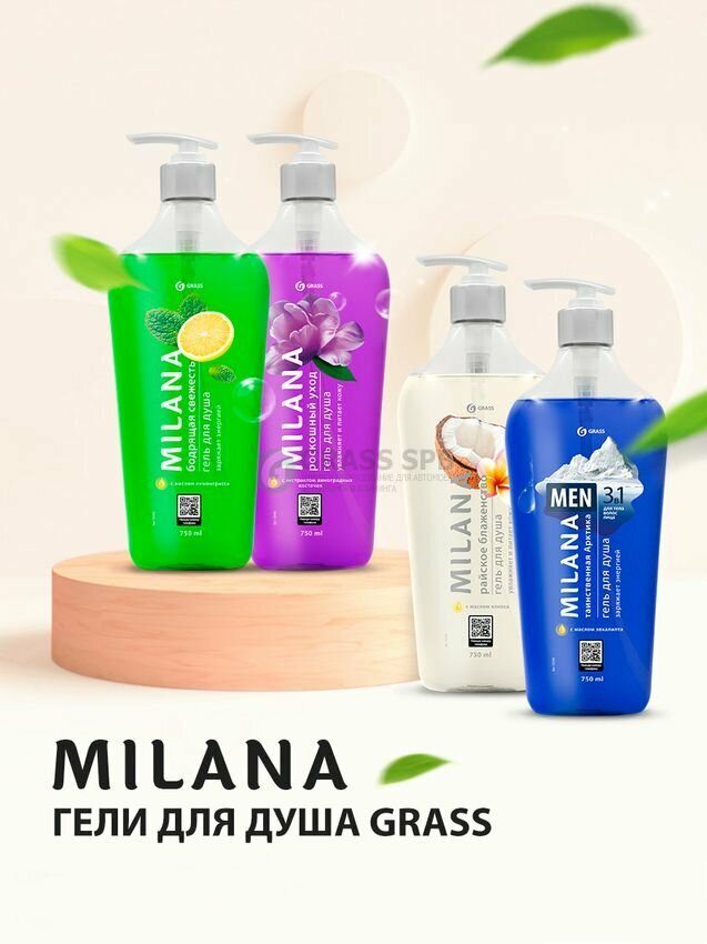 Гель для душа GRASS Milana Бодрящая свежесть с маслом лемонграсса 750мл