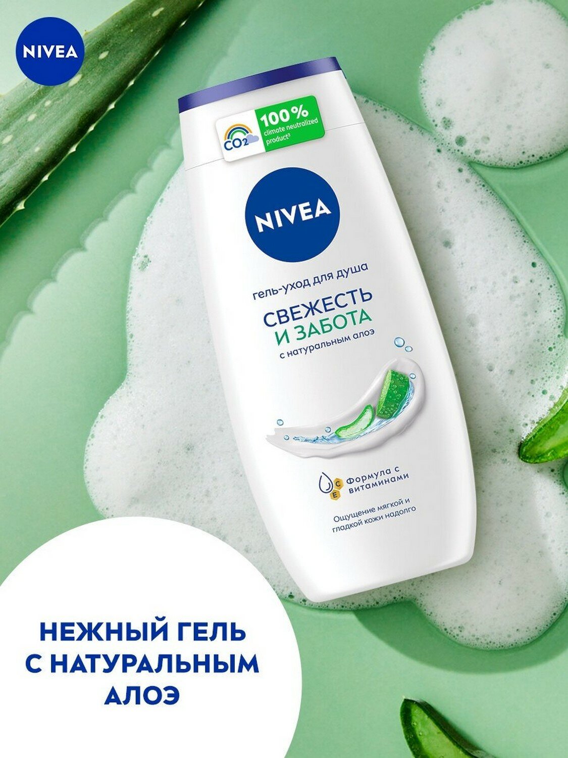 Гель-уход для душа NIVEA "Свежесть и забота" с натуральным алоэ вера, 250 мл.