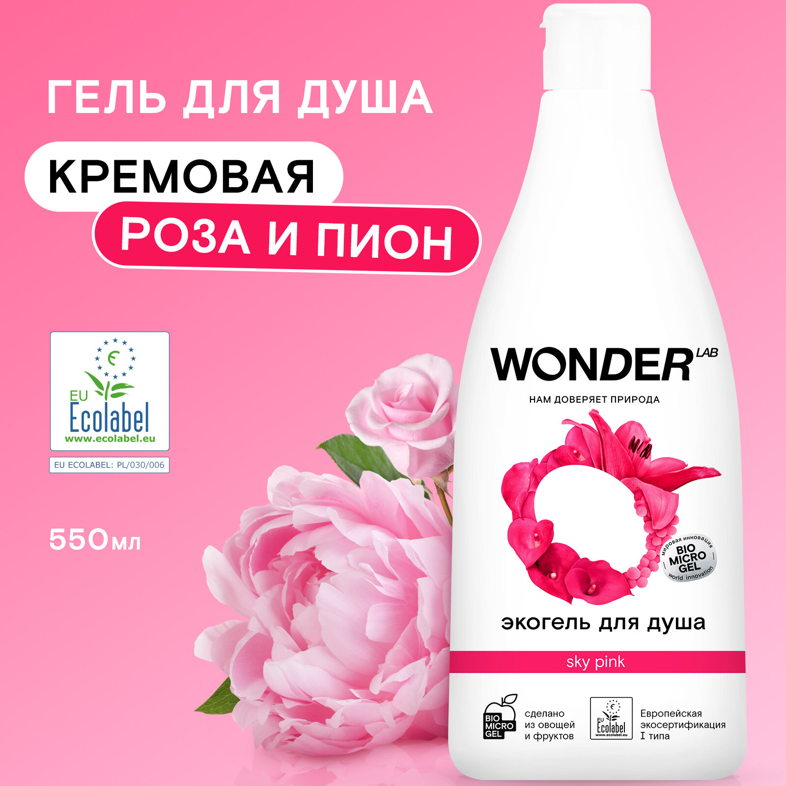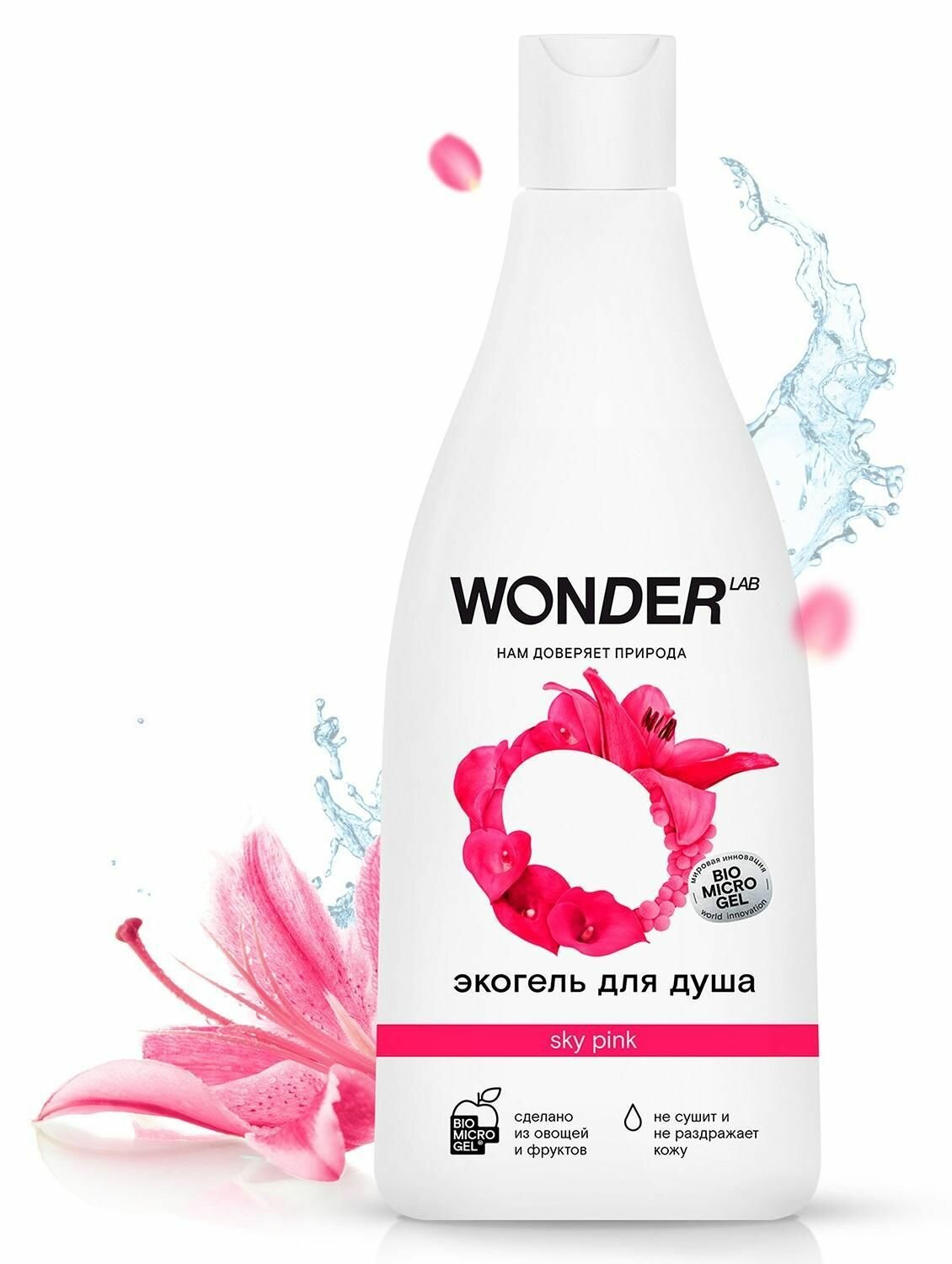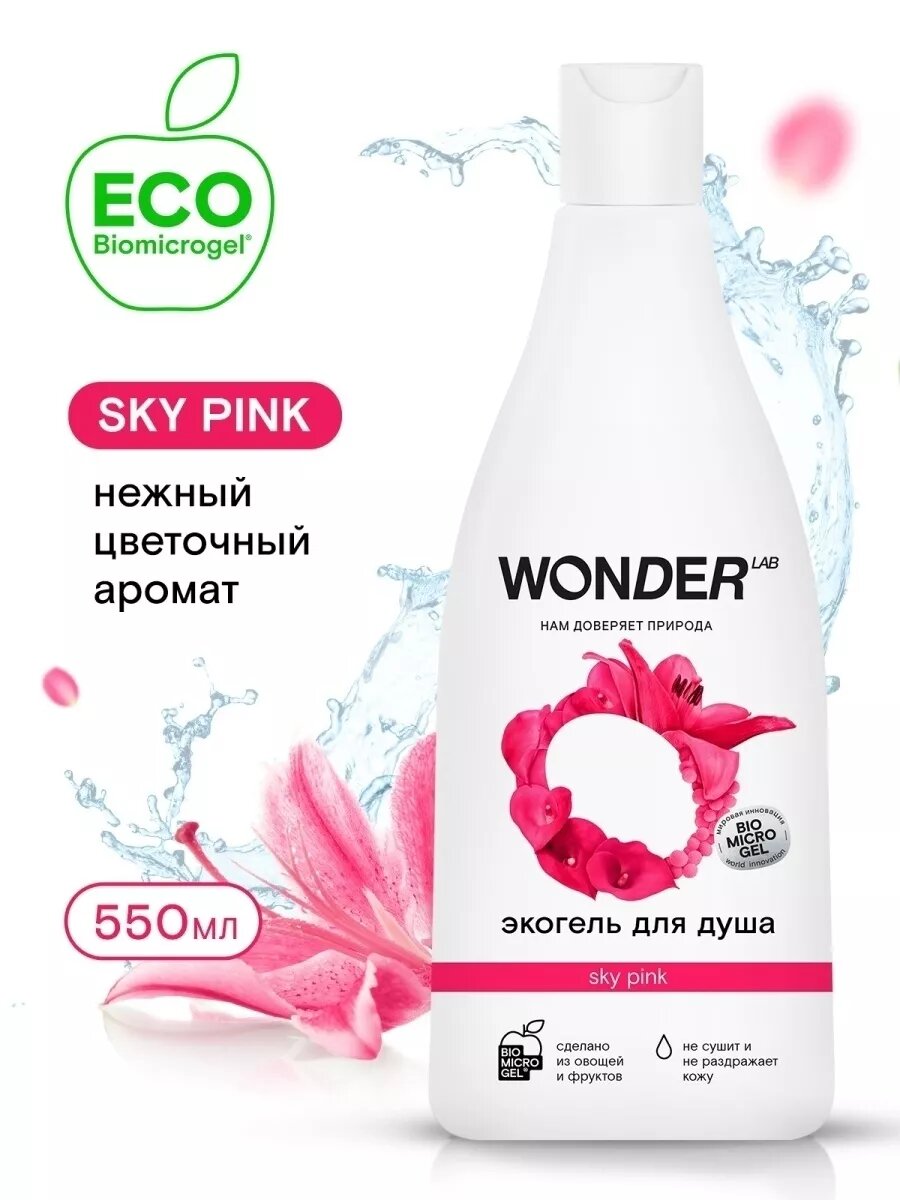 Купить Эко гель для душа увлажняющий Sky Pink с ароматом цветов WONDER LAB, 550 мл