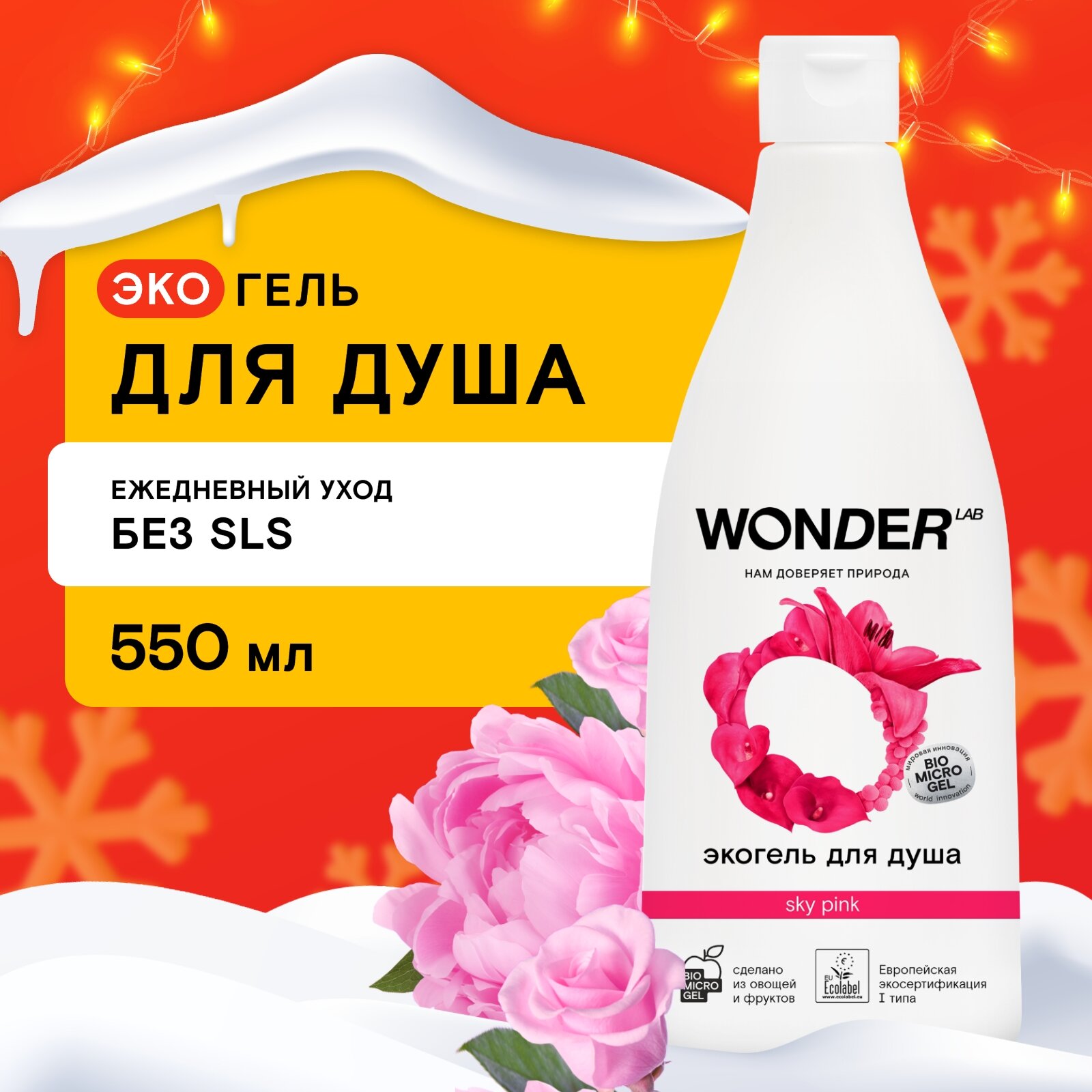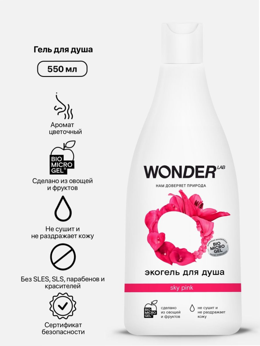 Эко гель для душа увлажняющий WONDER LAB, с ароматом цветов , 550 мл