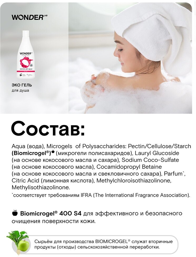 Гель для душа увлажняющий WONDER LAB экологичное средство для тела без сульфатов 550 мл