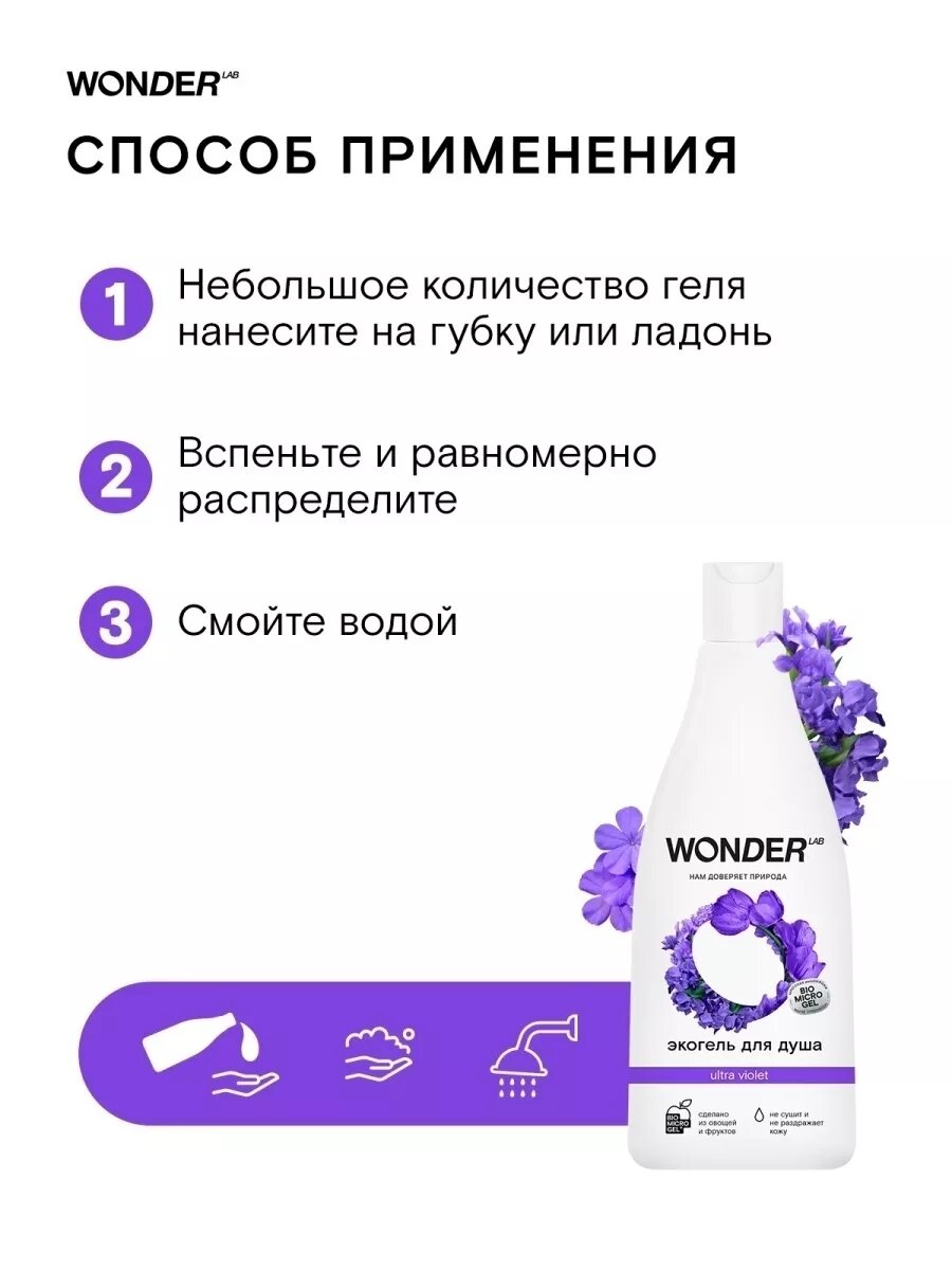 Эко гель для душа увлажняющий Ultra violet с ароматом полевых цветов WONDER LAB, 550 мл