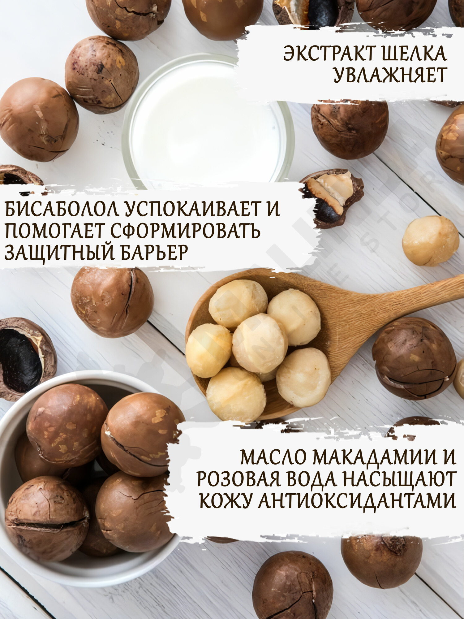 | Масла и эссенции | масло жожоба / масло макадамии / экстракт маточного молочка / экстракт шелка |