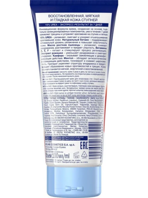 EVELINE Крем для ног SOS EXTRA SOFT cмягчающий для потрескавшихся пяток, 100 мл интересное: