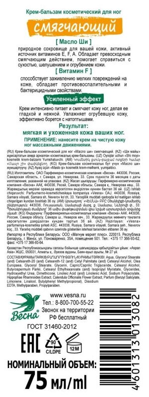 Купить Весна Крем-бальзам для ног Смягчающий, 75 мл