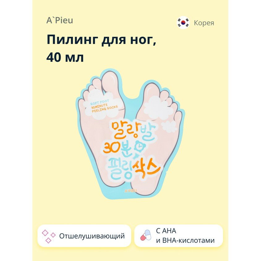 Пилинг для ног A`PIEU SOFT FOOT отшелушивающий с АНА и ВHA-кислотами 40 мл интересное: