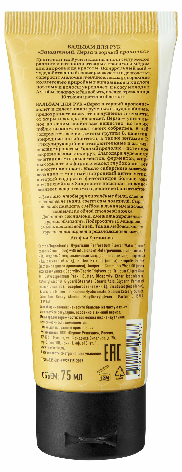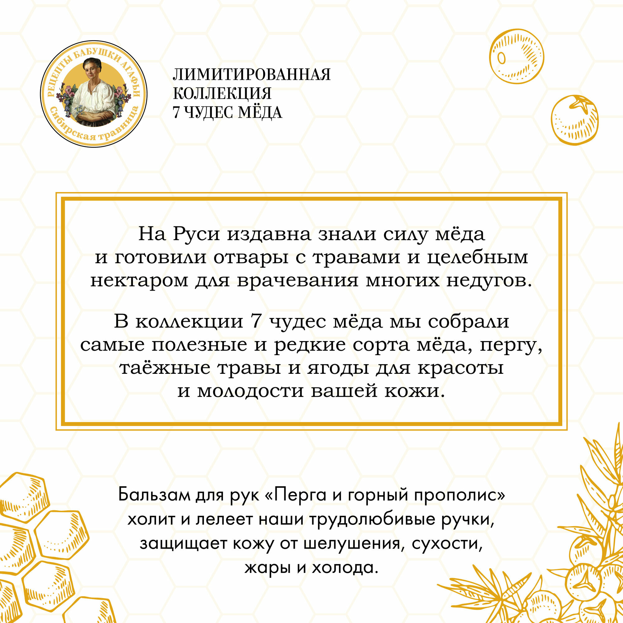 Бальзам для рук Рецепты бабушки Агафьи Сибирская травница 7 чудес мёда защитный Перга и горный прополис, 75 мл интересное:
