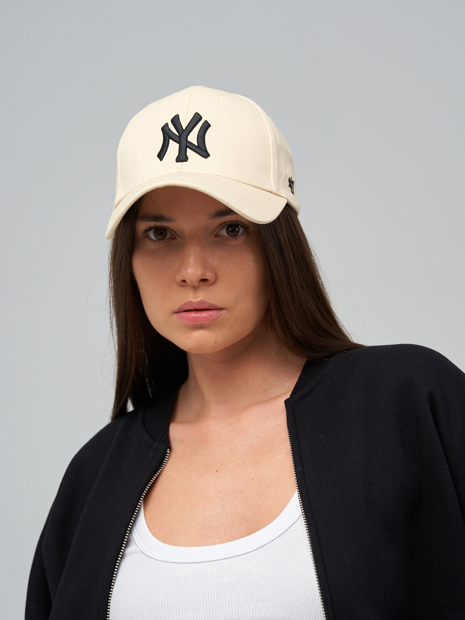 Купить Бейсболка NY унисекс - демисезонная бежевая бейсболка с надписью NY