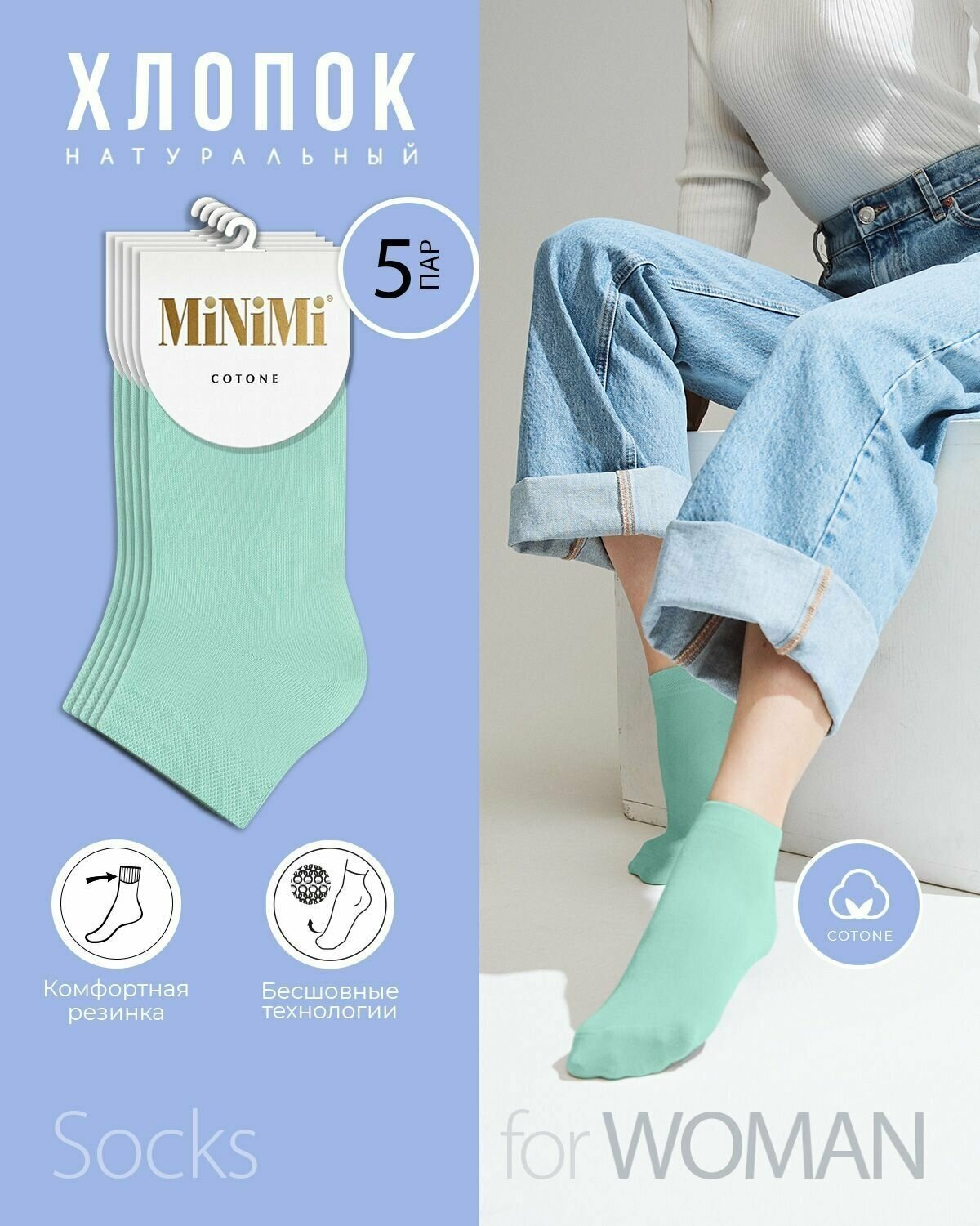 Носки женские MiNiMi COTONE 1201, набор 5 пар, Цвет Menta, Размер 35-38 (23-25)