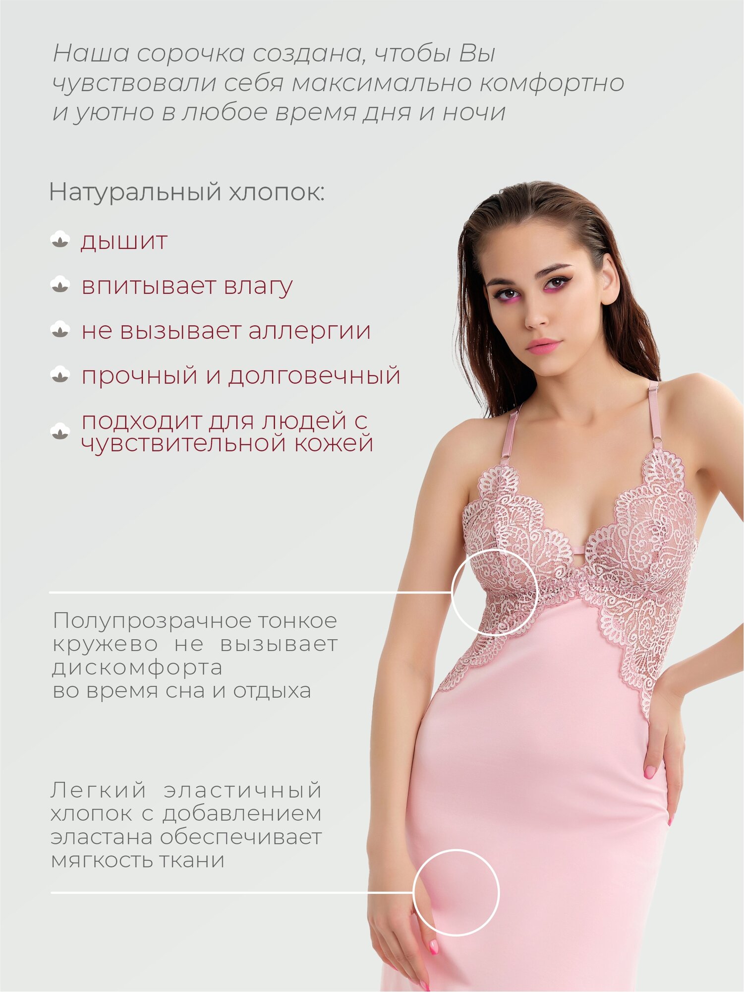 СохранитьНочная сорочка кружевная хлопок Mon Plaisir, арт.216125400, розовый жемчуг, размер 46 интересное: