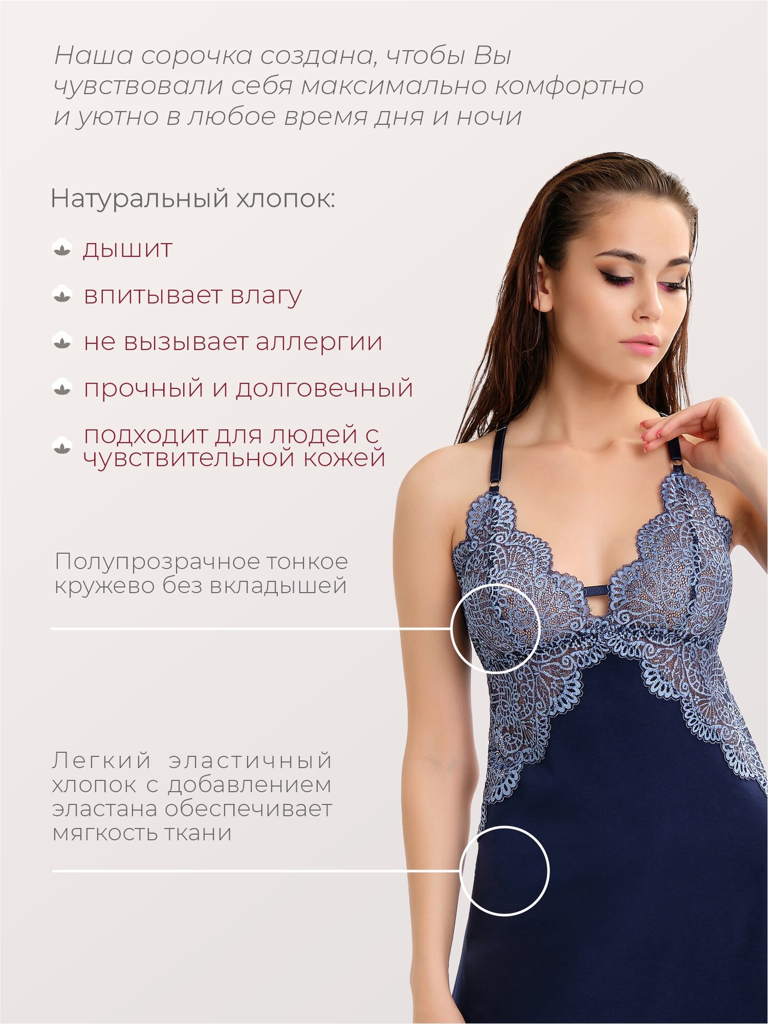 Ночная сорочка кружевная секси ночнушка хлопок Mon Plaisir