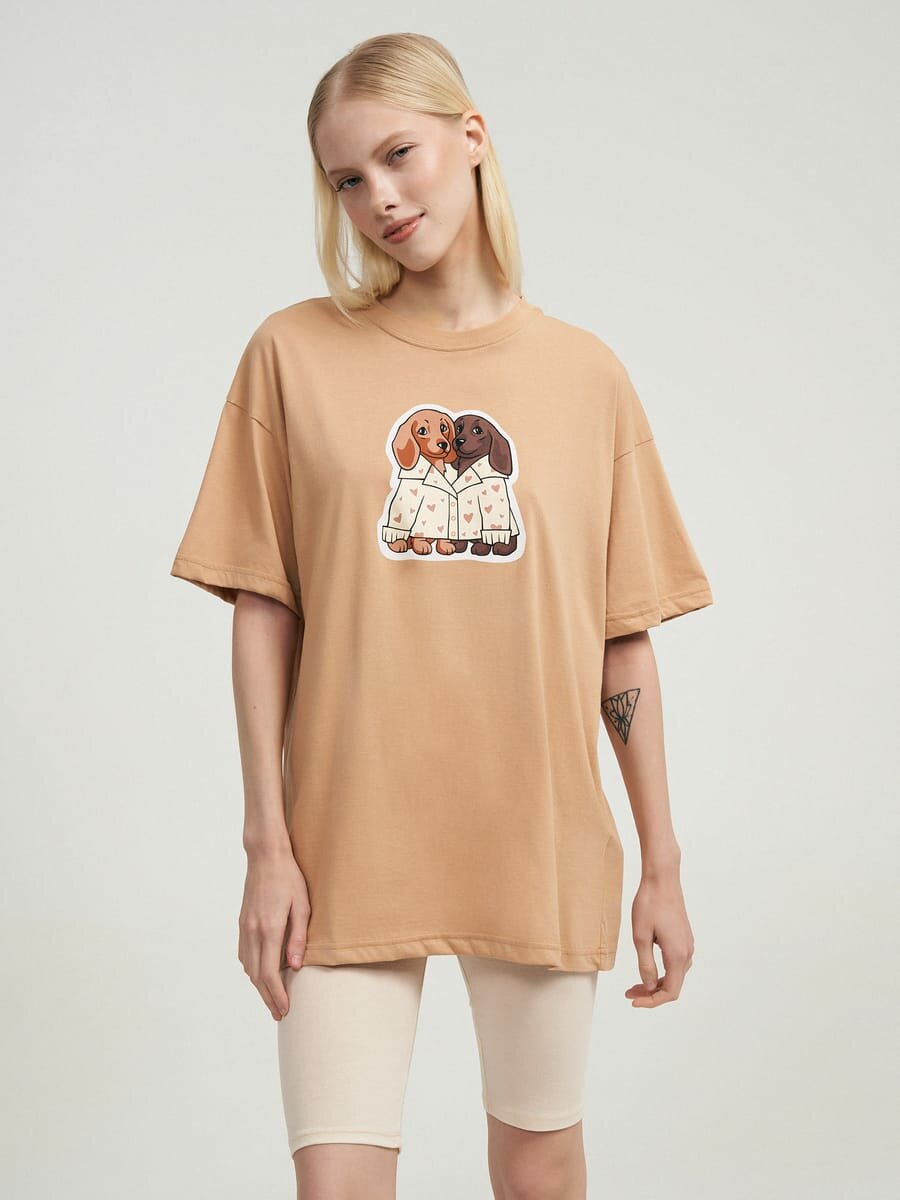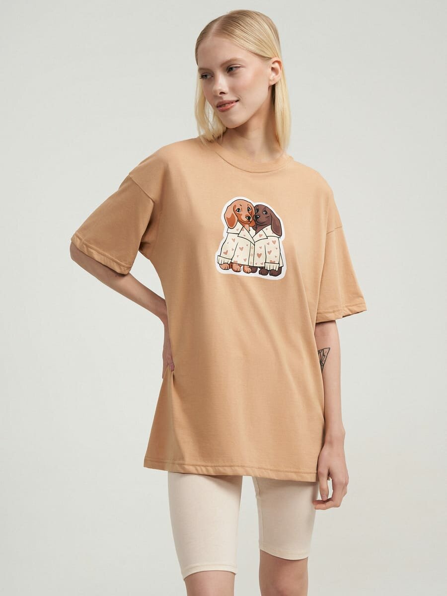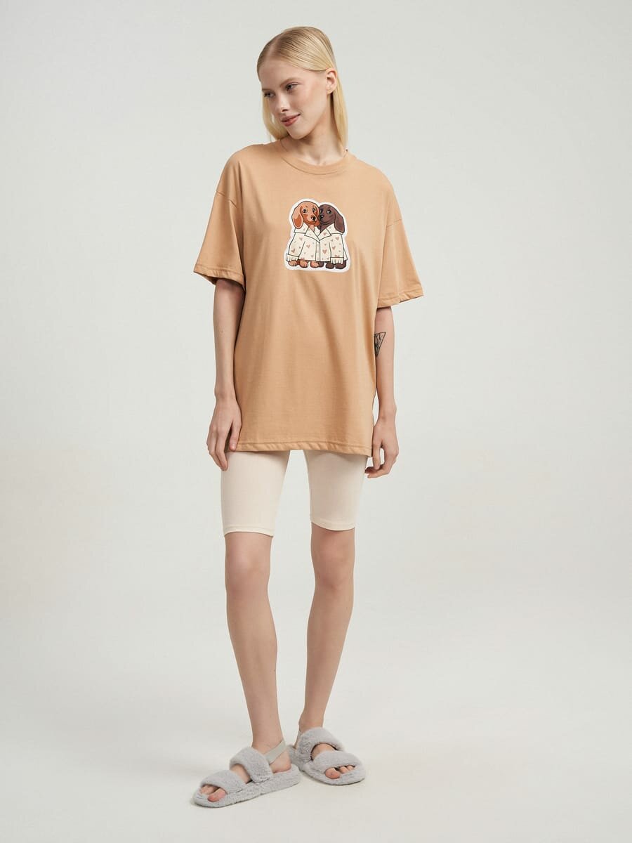 Купить Хлопковая пижама с футболкой и велосипедками твое, арт. 102748,бежевый,M