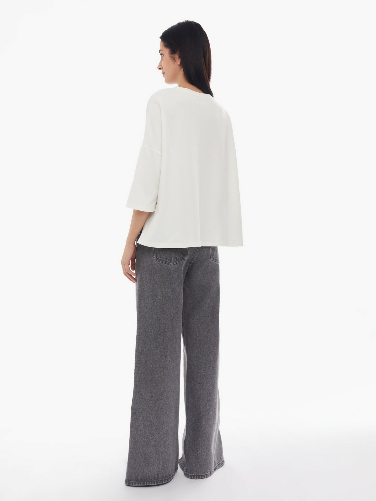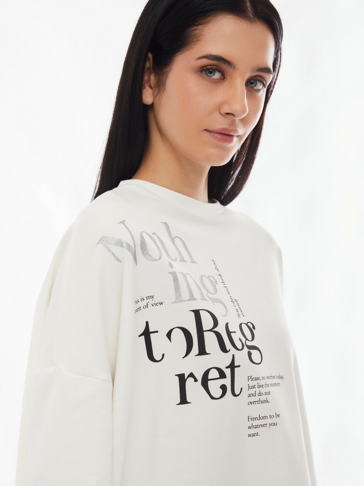 Тонкий джемпер-футболка оверсайз с надписью, цвет Молоко, размер M 02413319Y091 интересное: