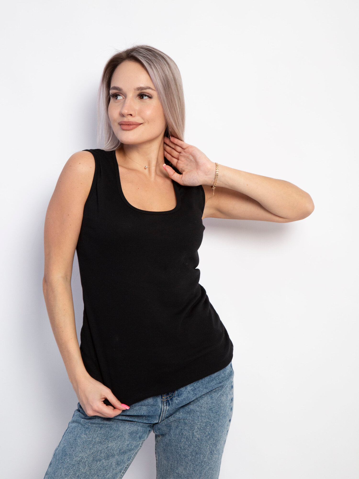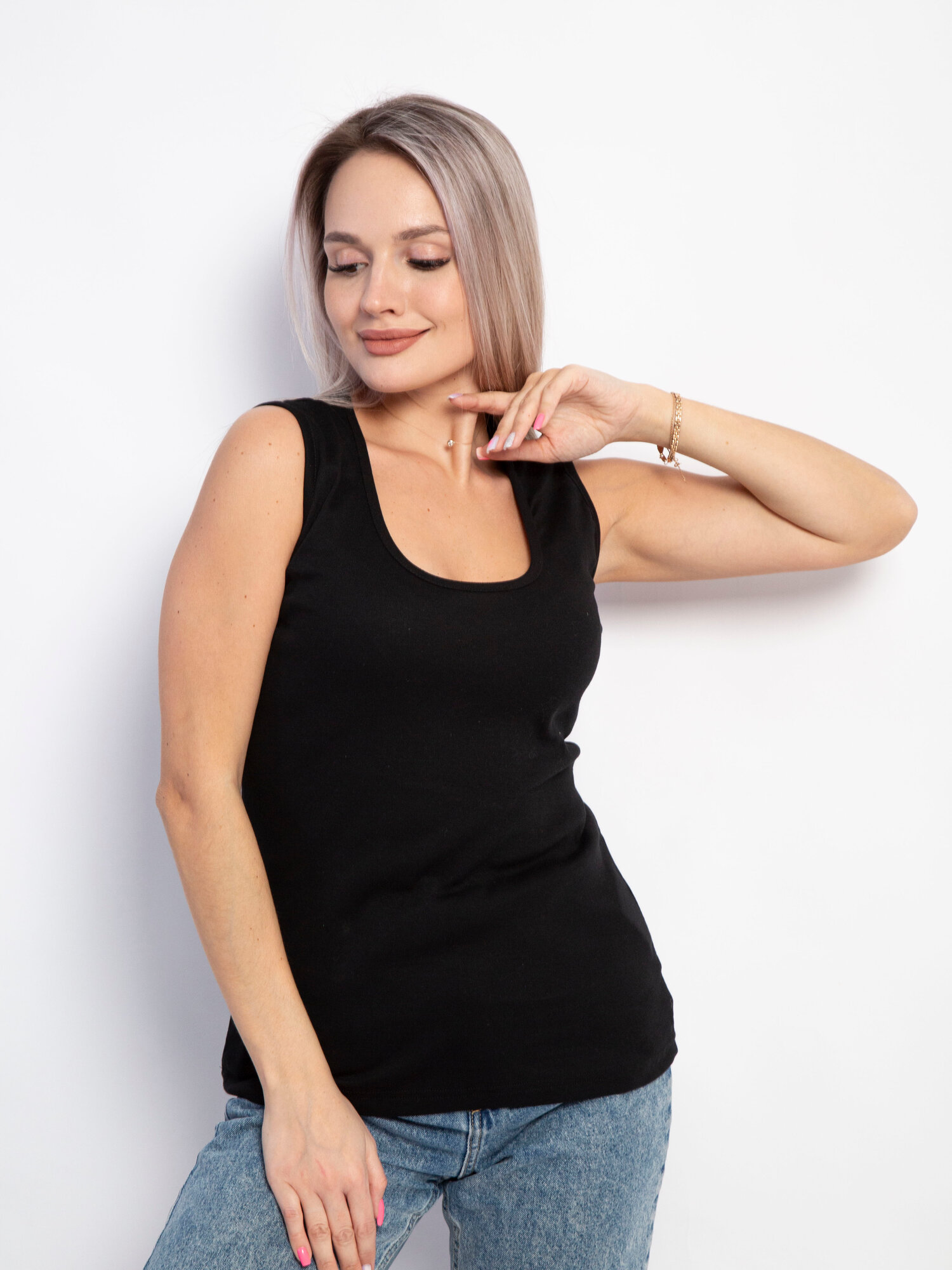 Майка черная под пиджак, размер 46, бренд INTERLOC