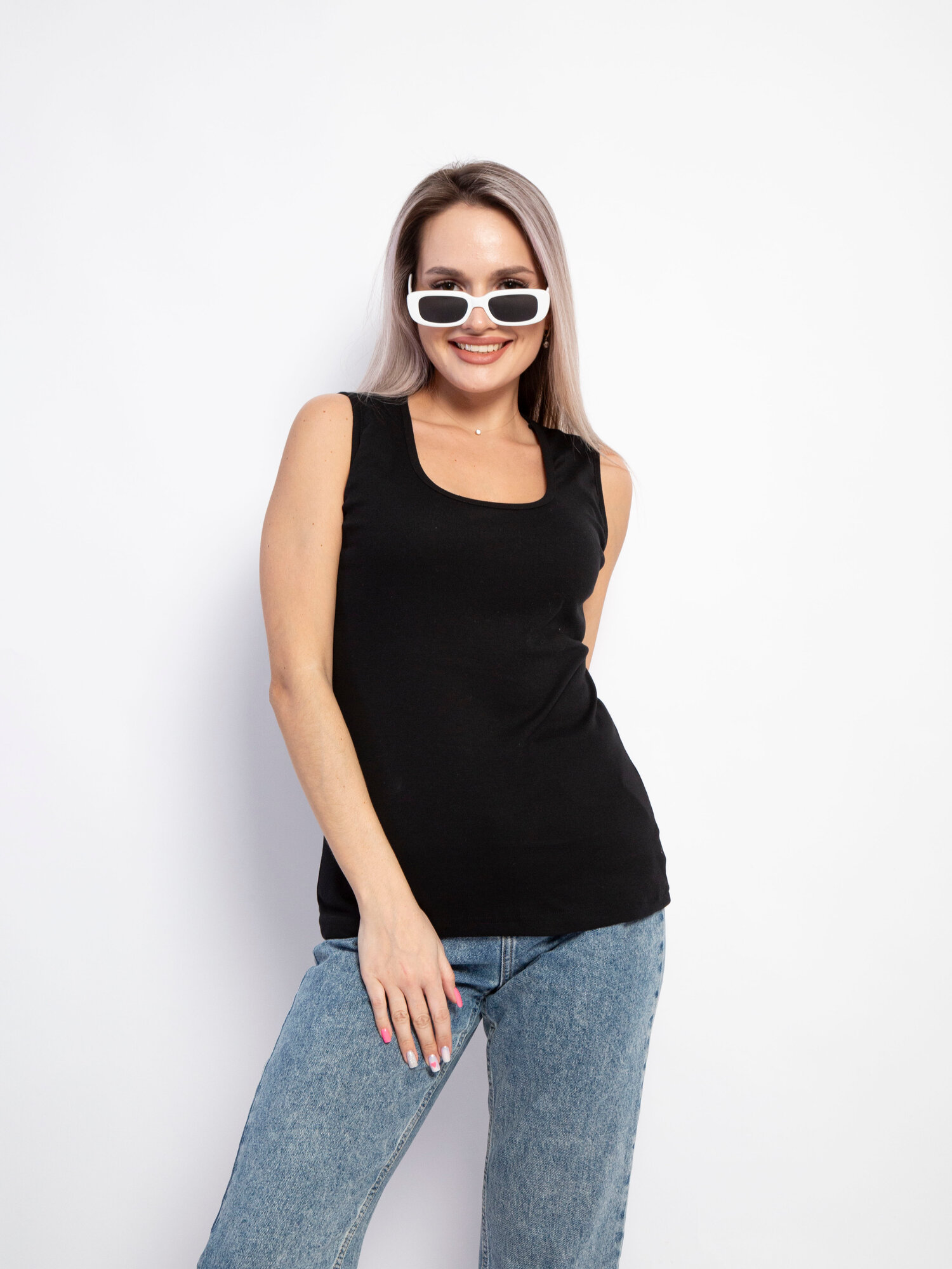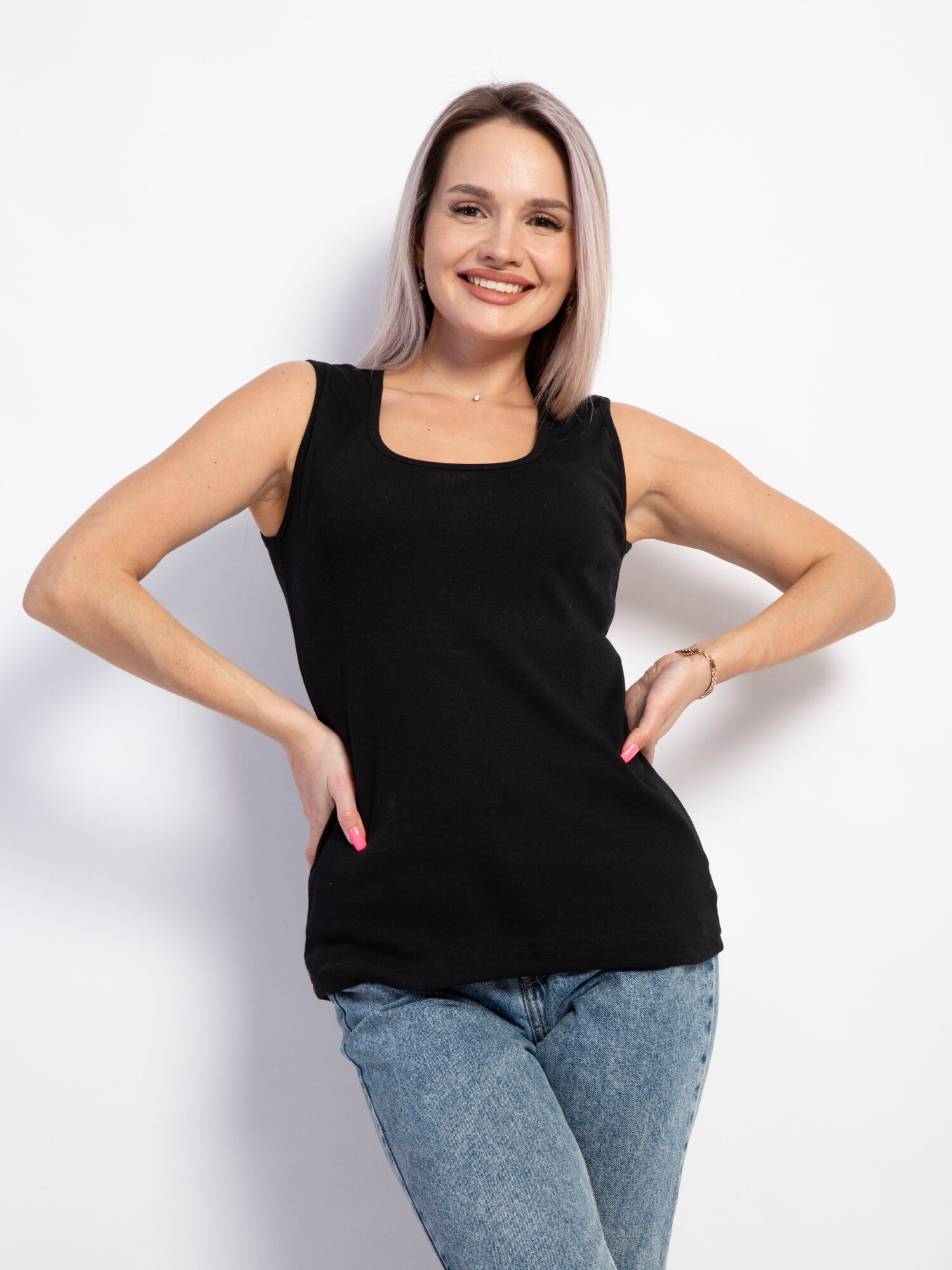 Майка Интерлок, 1 шт., размер 100, глубокий черный