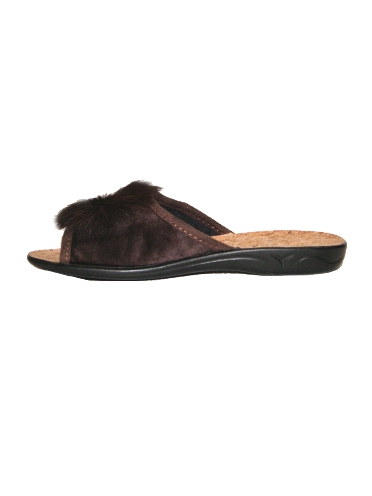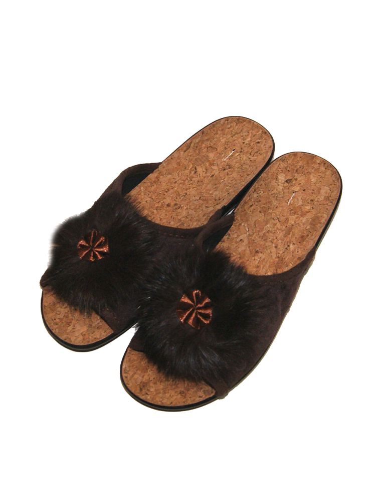Купить Тапочки домашние женские с пушком и пробковой анатомической стелькой,коричневые, 36 размер