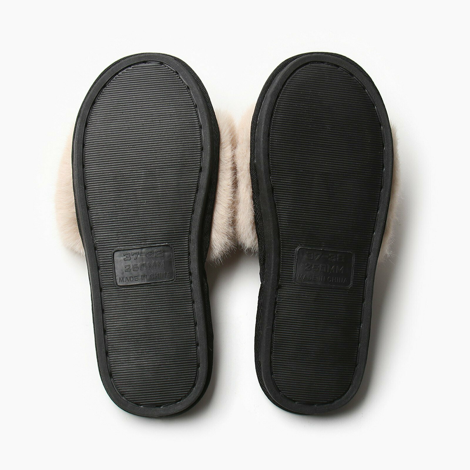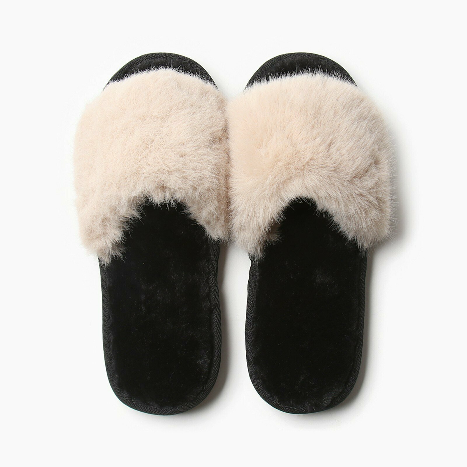 Меховые женские домашние тапочки с открытым носом размер 37-38, цвет черный