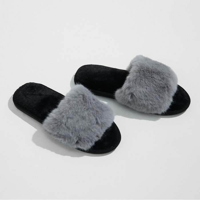 Купить Меховые женские домашние тапочки с открытым носом размер 41-42, цвет серый