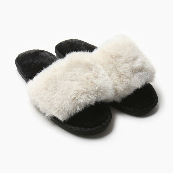 Купить Меховые женские домашние тапочки с открытым носом размер 37-38, цвет молочный