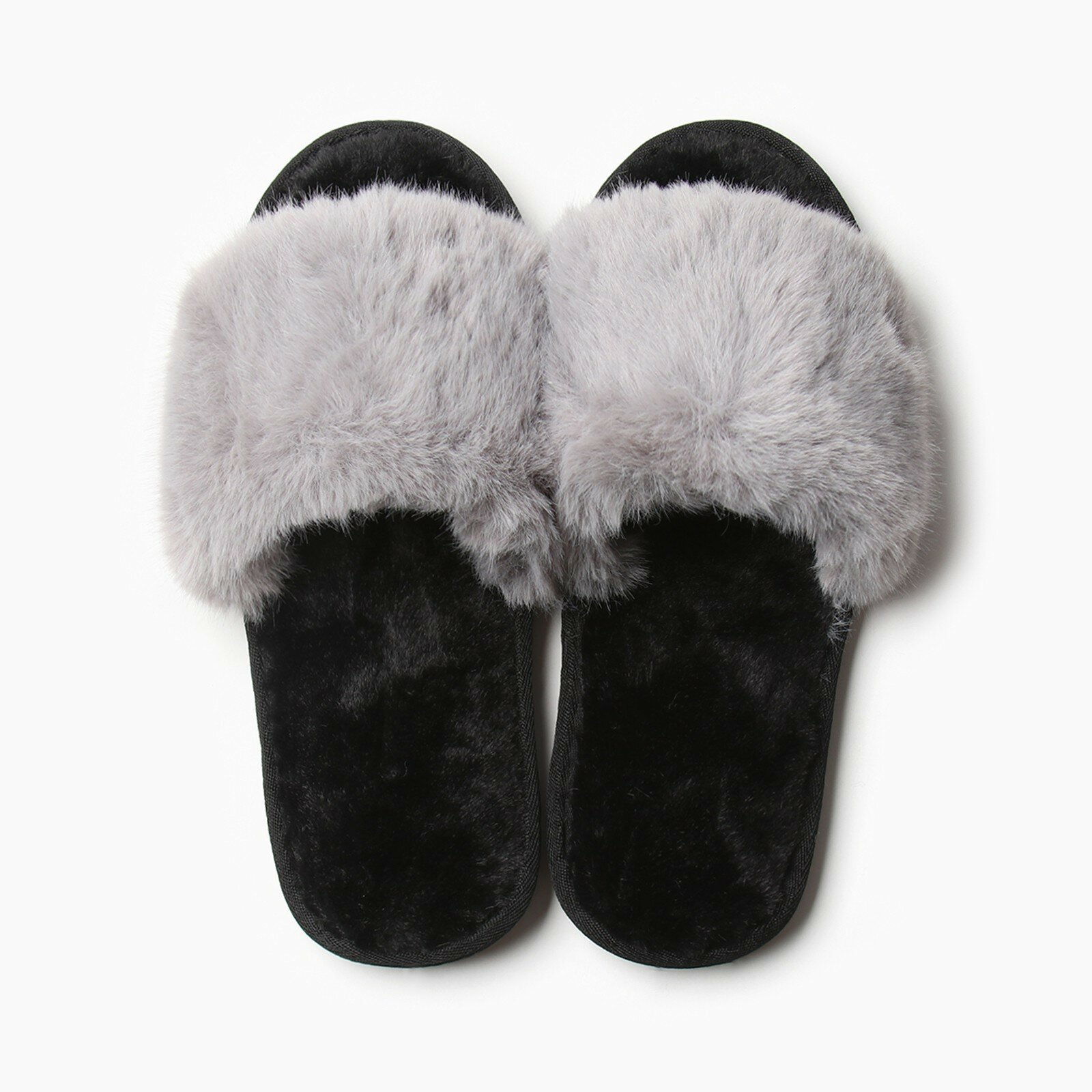Купить Меховые женские домашние тапочки с открытым носом размер 37-38, цвет серый
