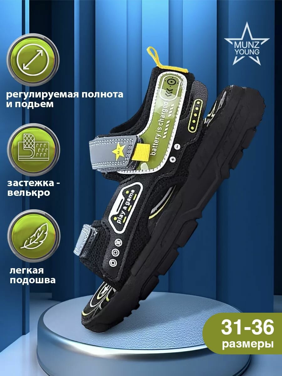 Сандалии MUNZ YOUNG, размер 32, черный, желтый