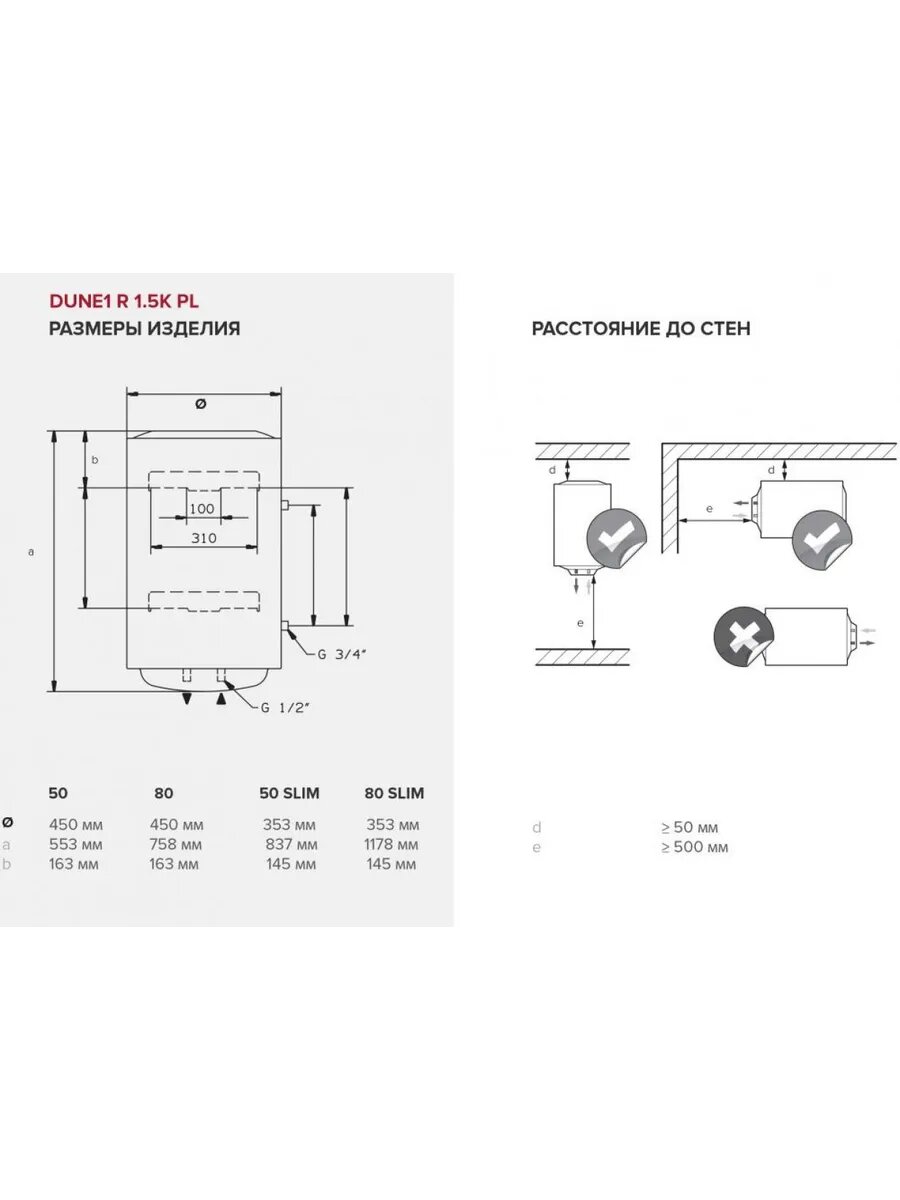 Водонагреватель Ariston DUNE1 R 80 V 1,5K PL, накопительный, 1.5кВт, 80л, белый [3700634]