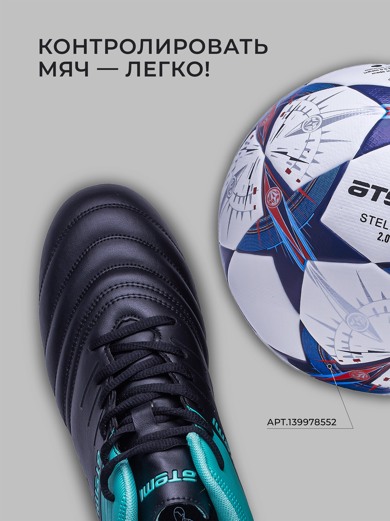 Бутсы футбольные ATEMI, SBA-002 MSR KIDS, цв. черный/ бирюзовый (35)