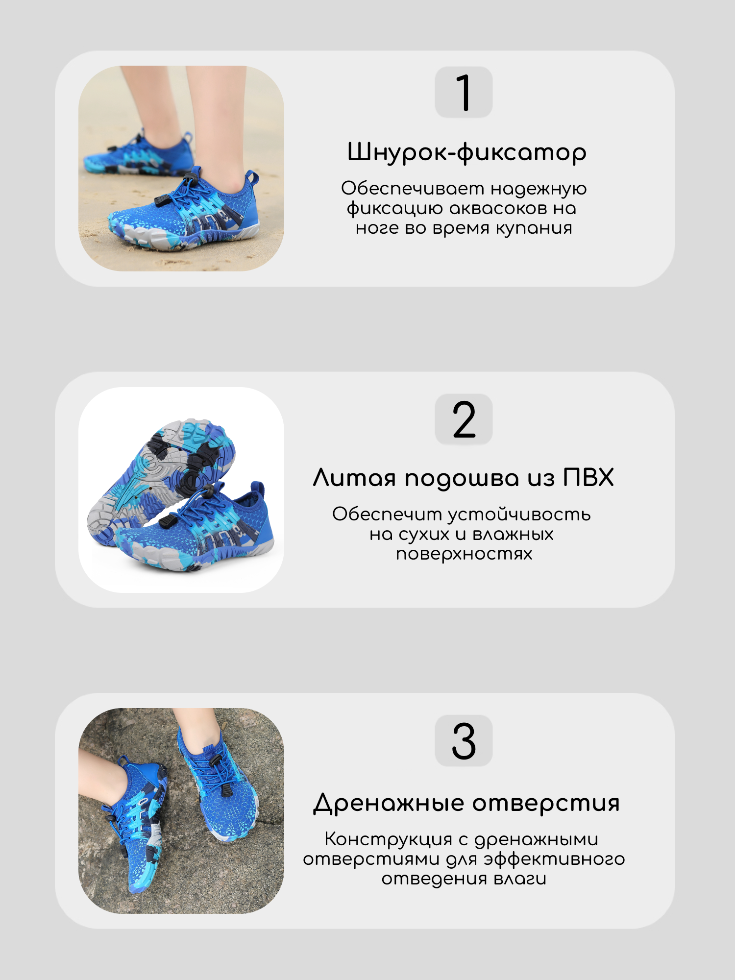 Акваобувь детская для моря и пляжа, размер 26, синий