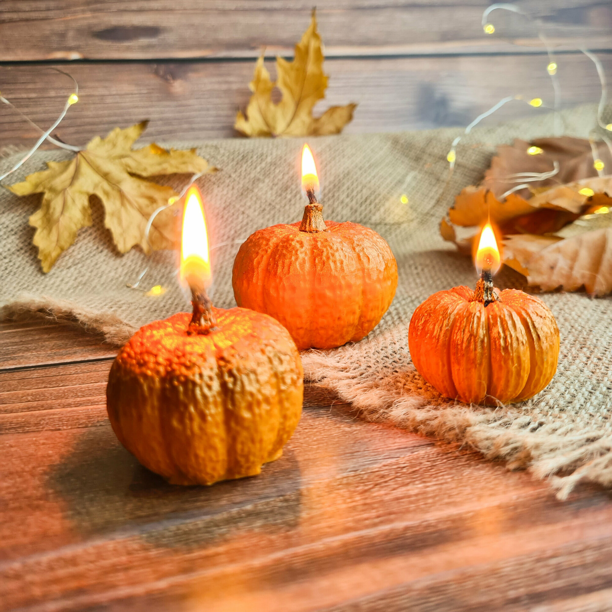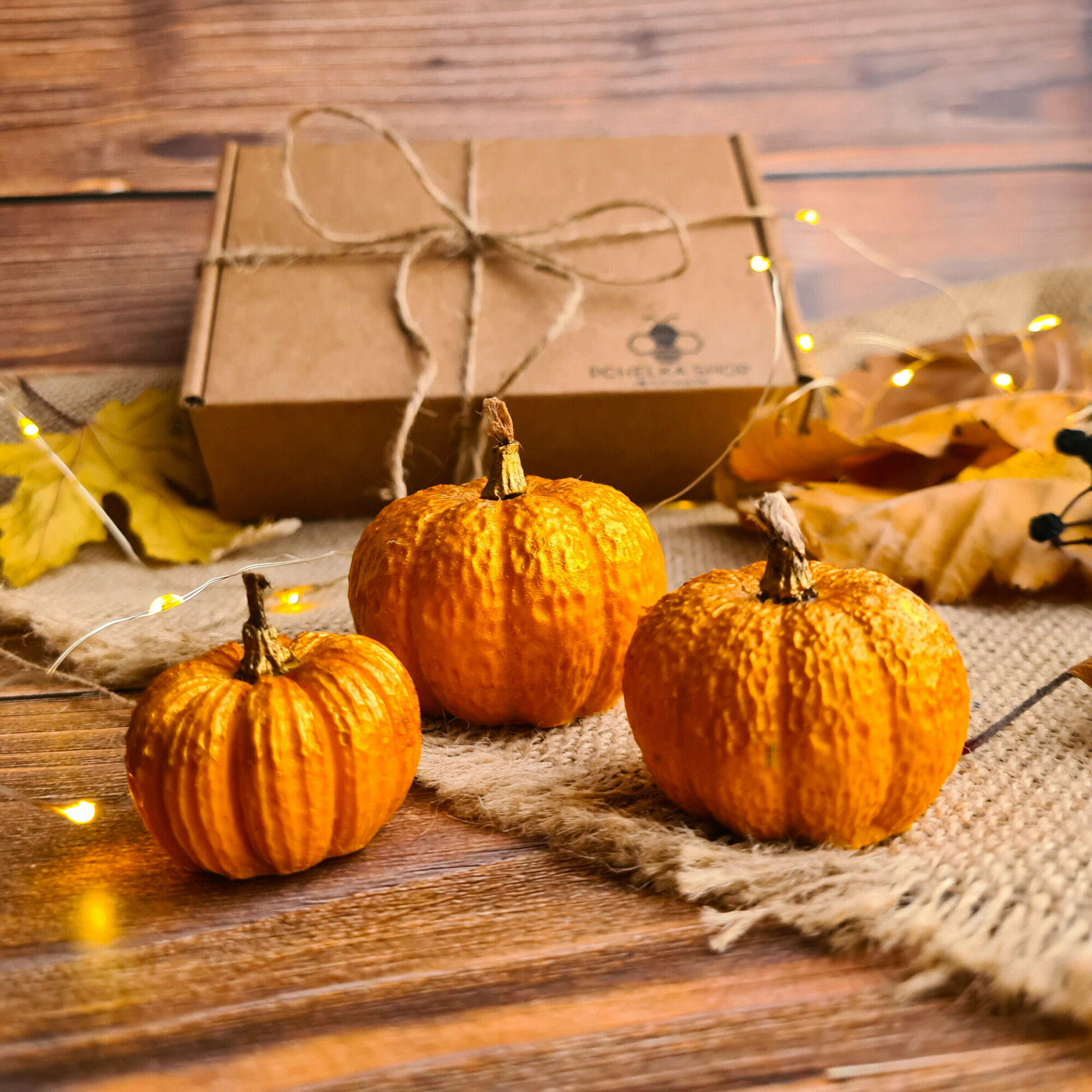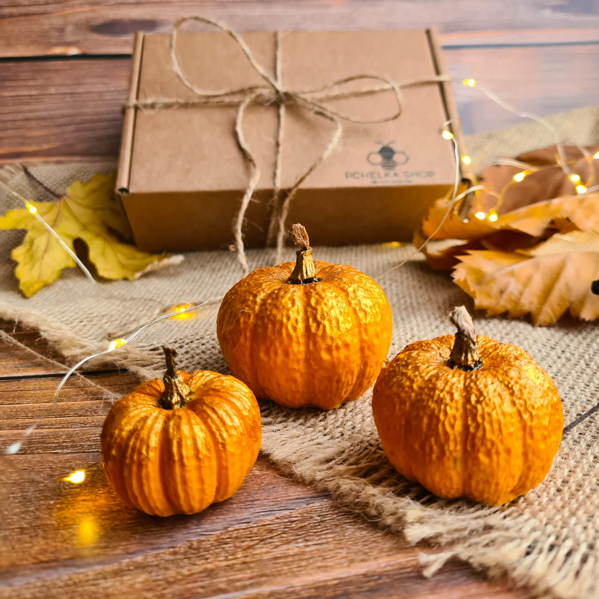 Набор свечей "Осенние Тыквы" оранжевый, 3 свечи + Подарок