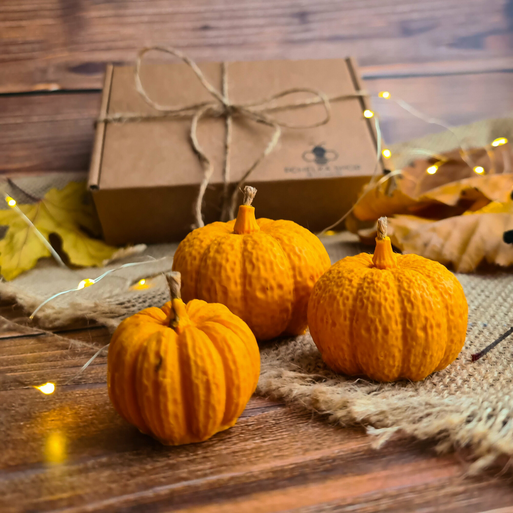 Набор свечей "Осенние Тыквы" оранжево-медный, 3 свечи + Подарок