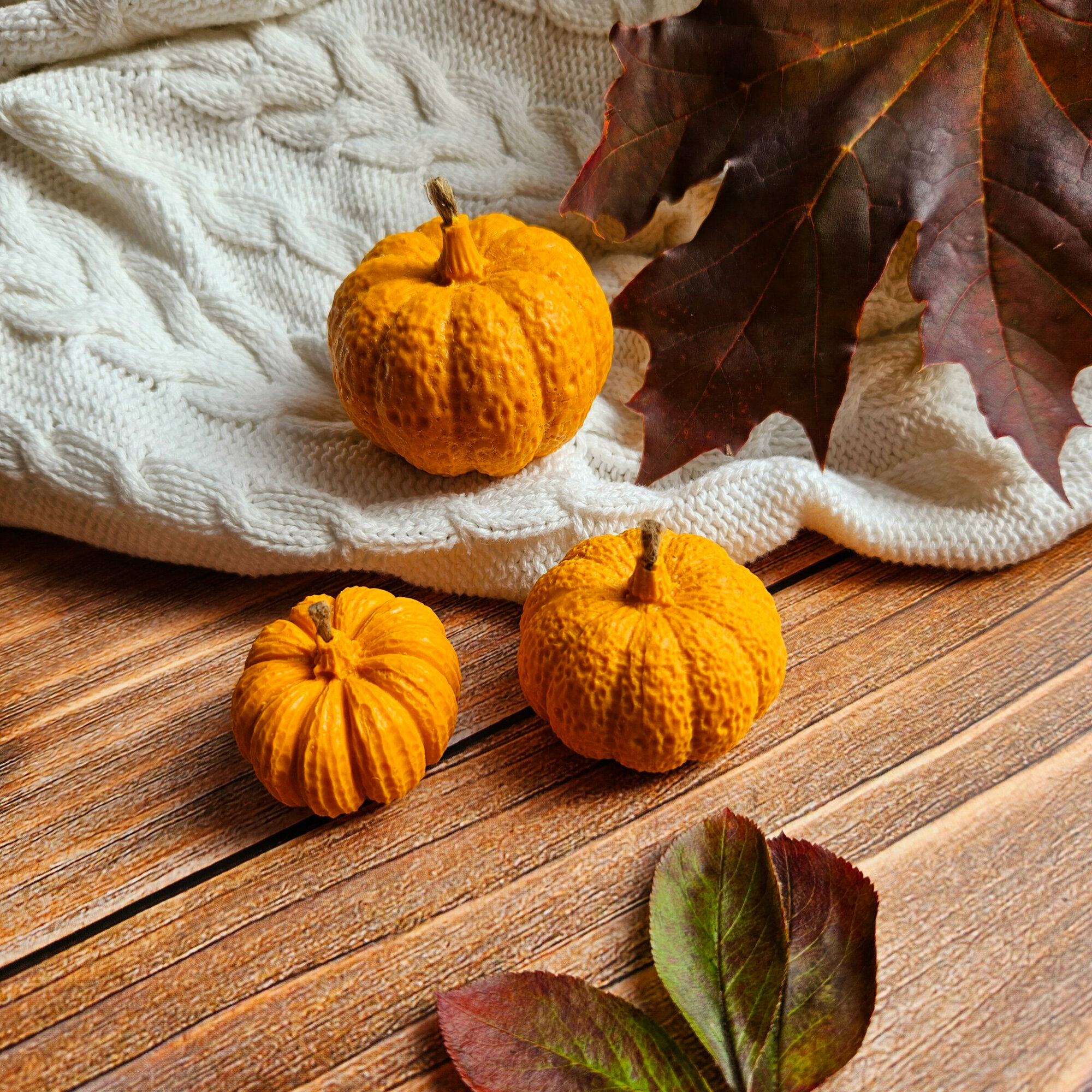 Набор свечей "Осенние Тыквы" оранжевый, 3 свечи + Подарок интересное: