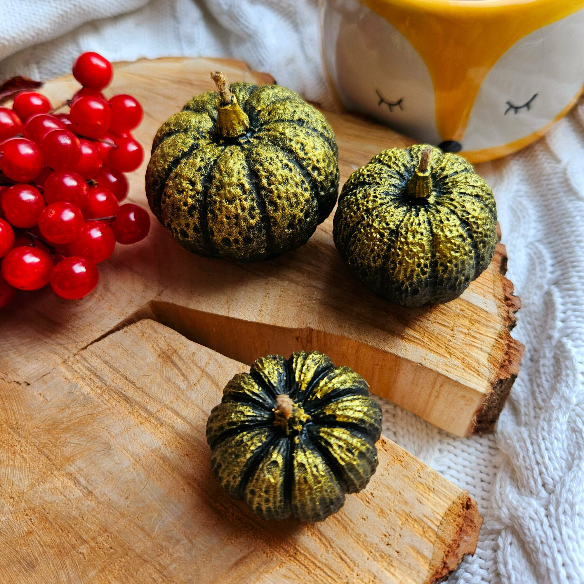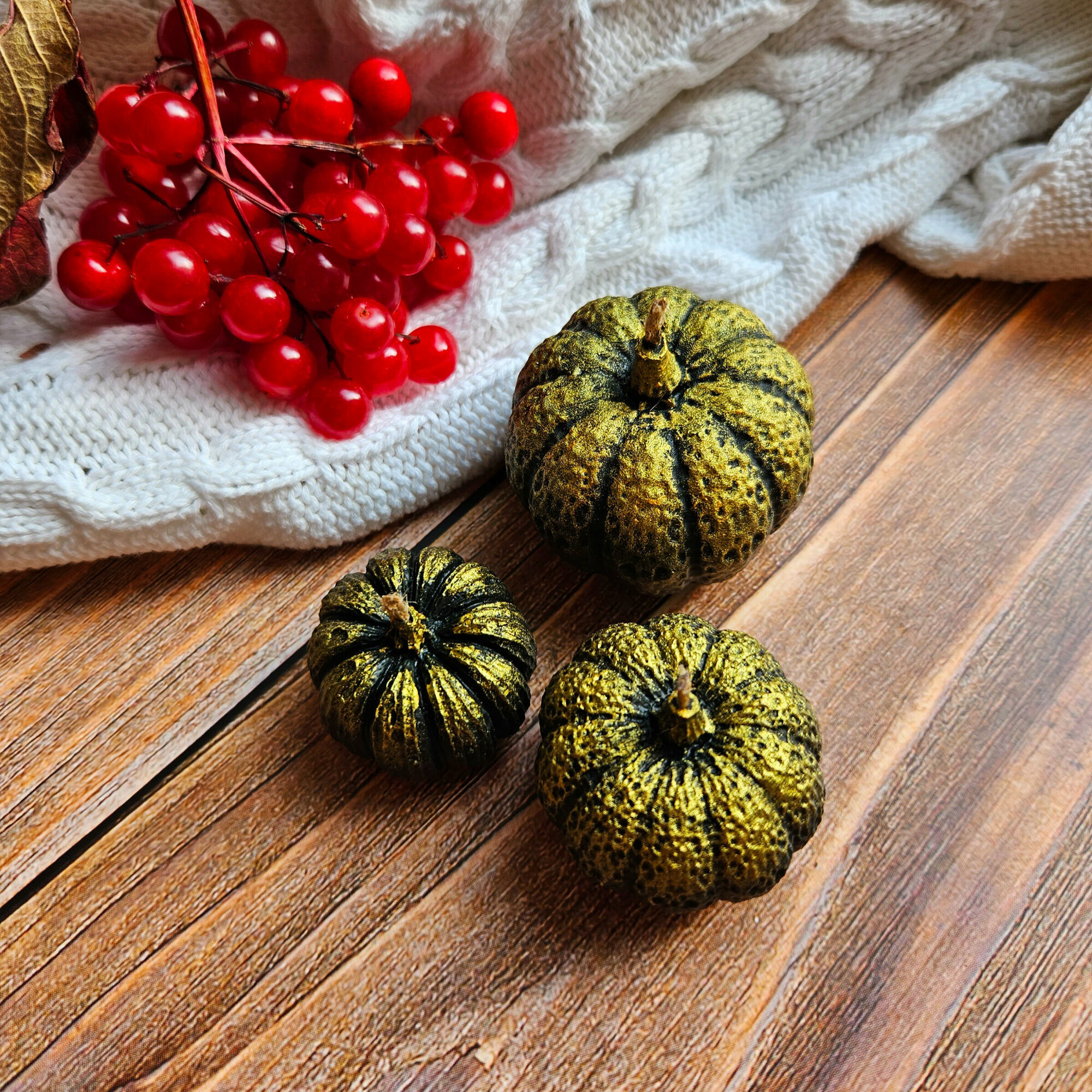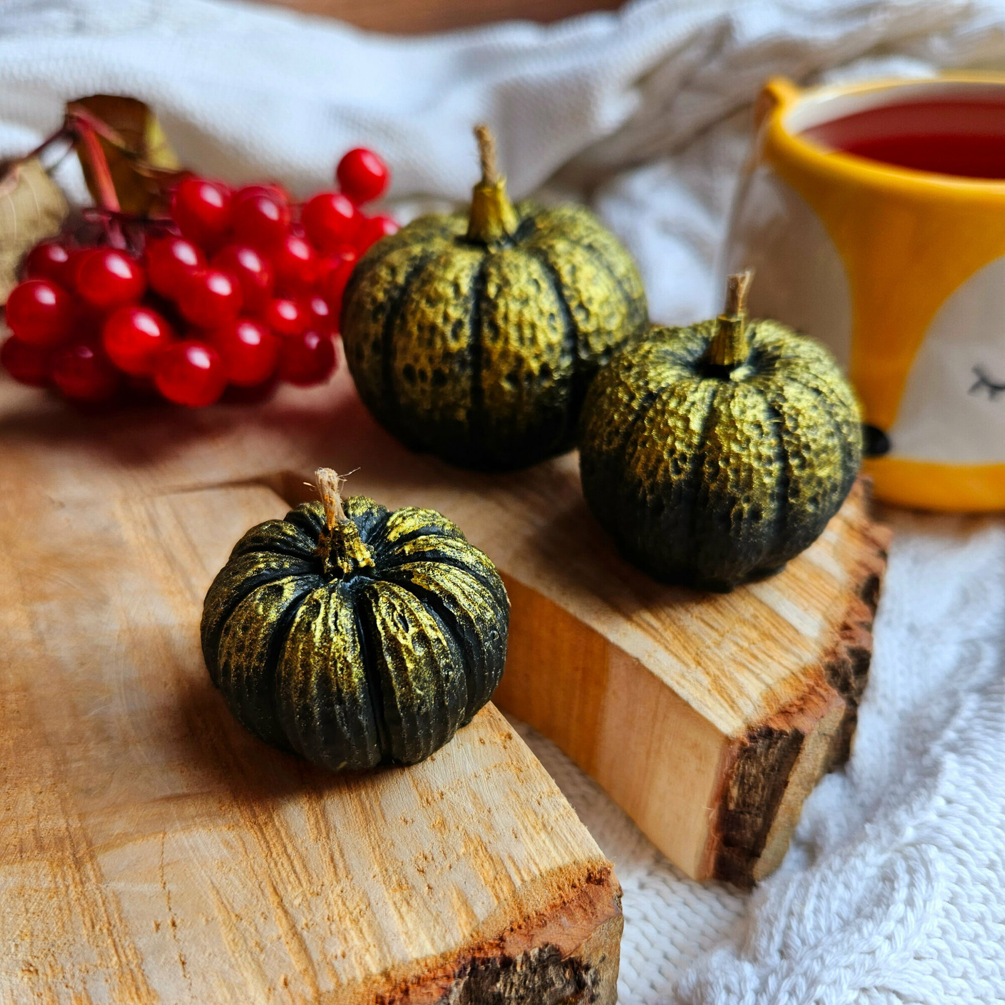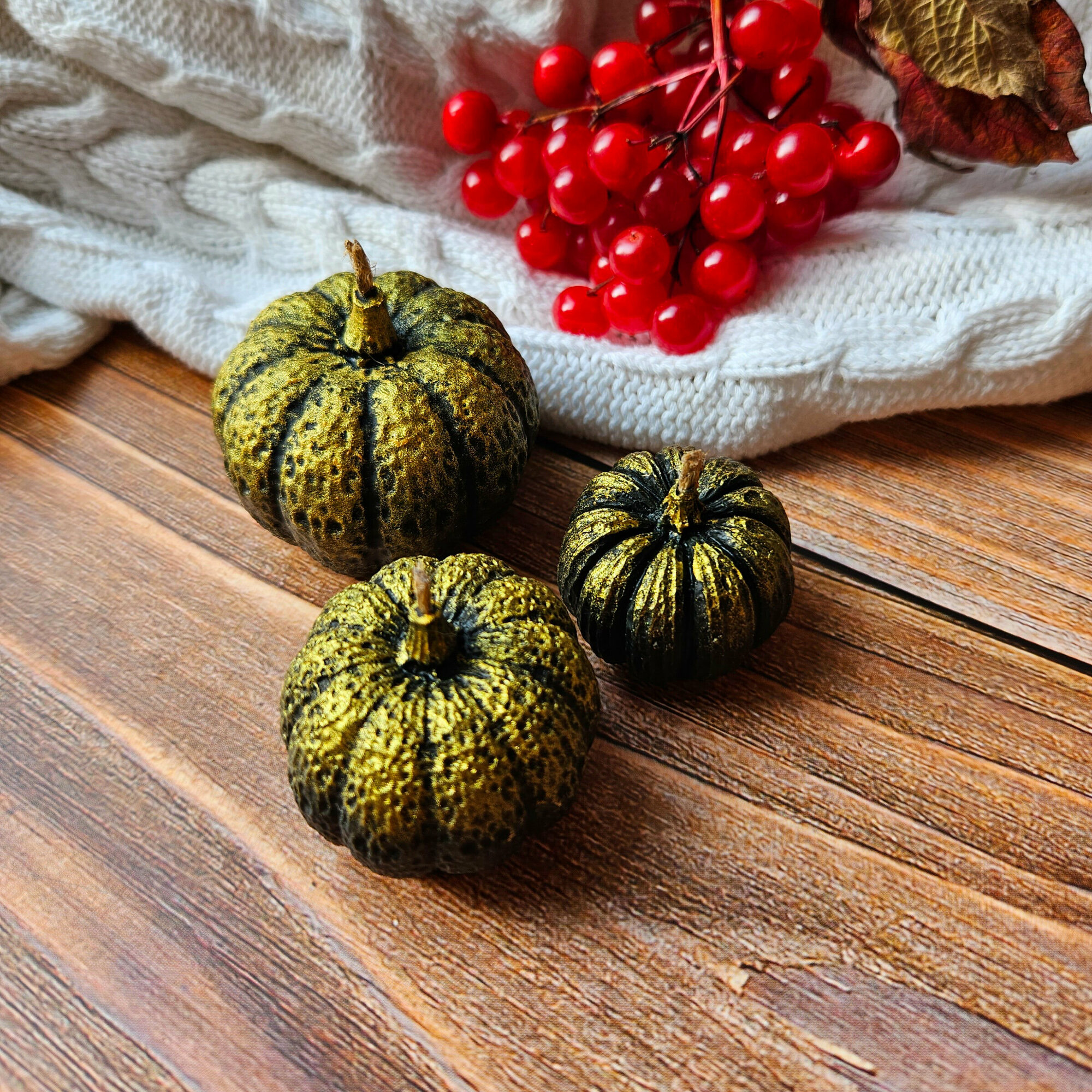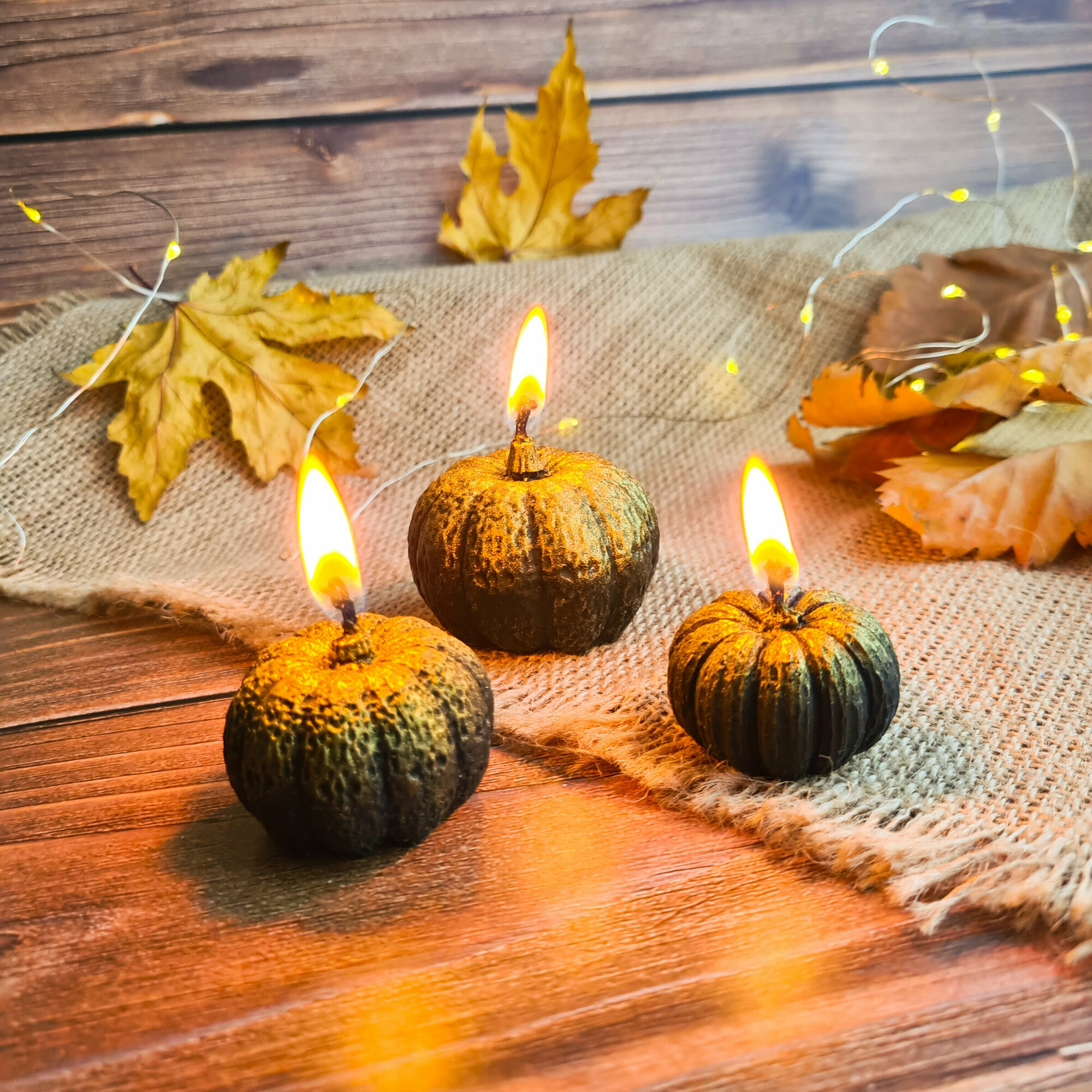 Набор свечей "Осенние Тыквы" черно-золотой, 3 свечи + Подарок интересное: