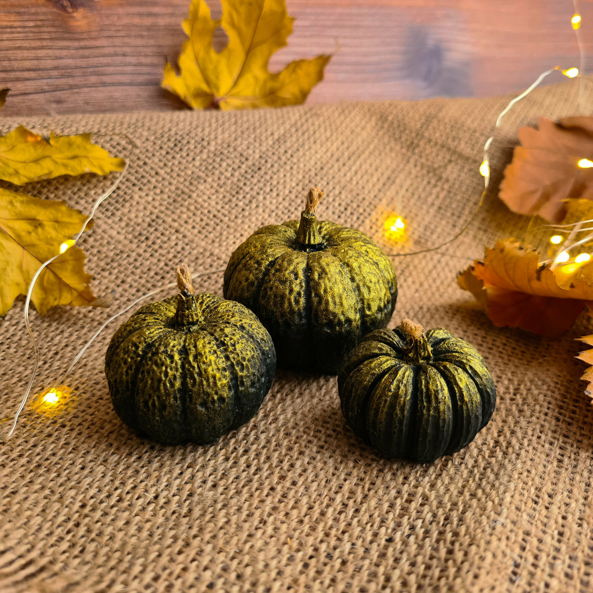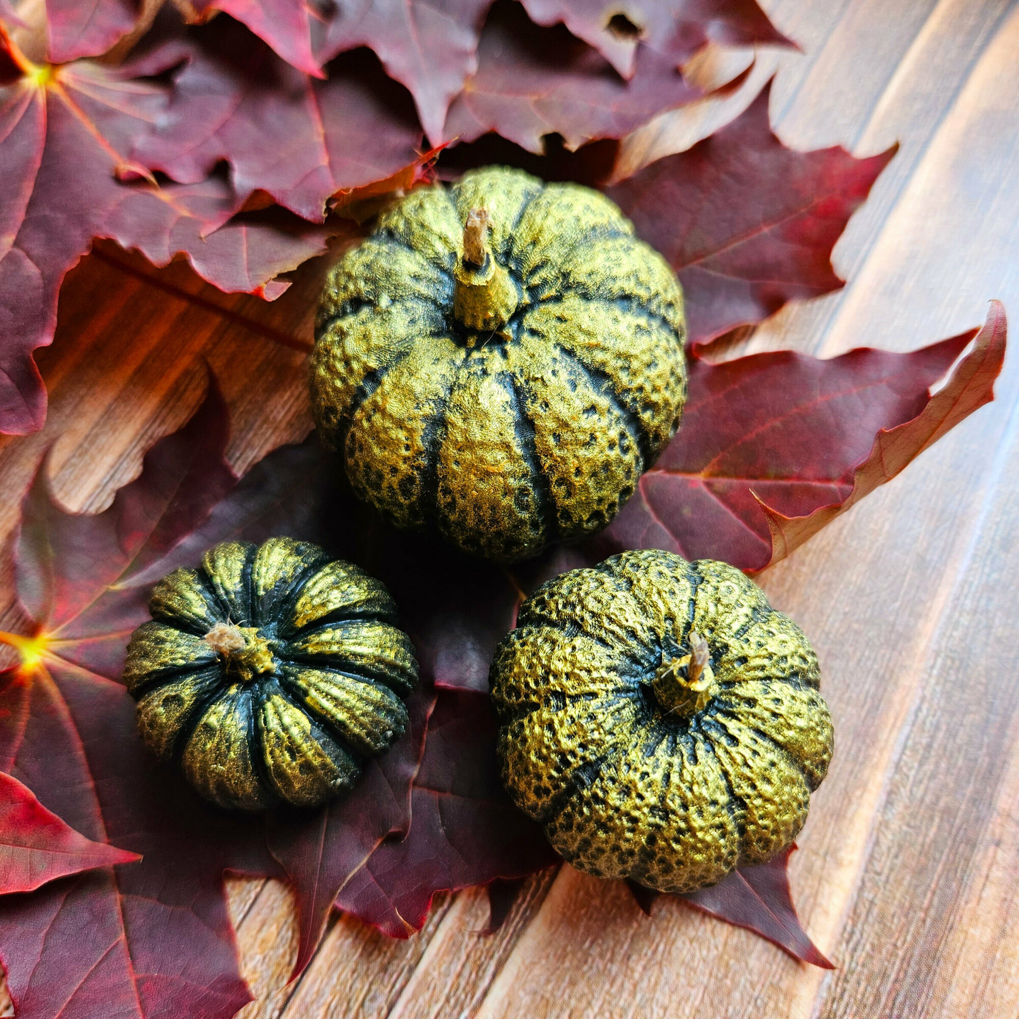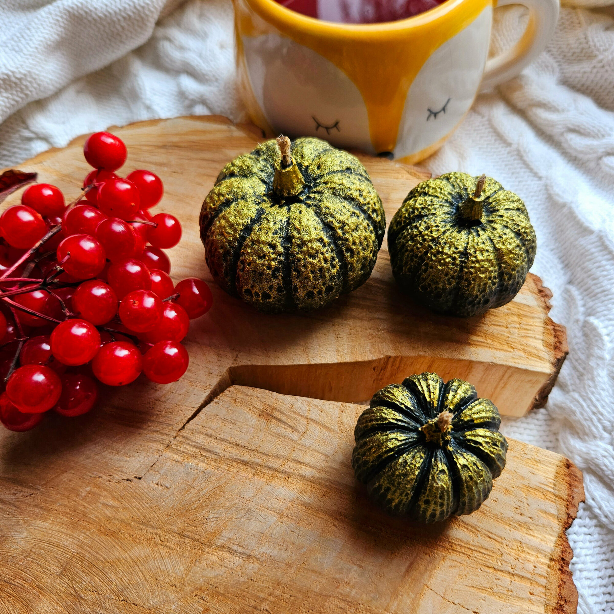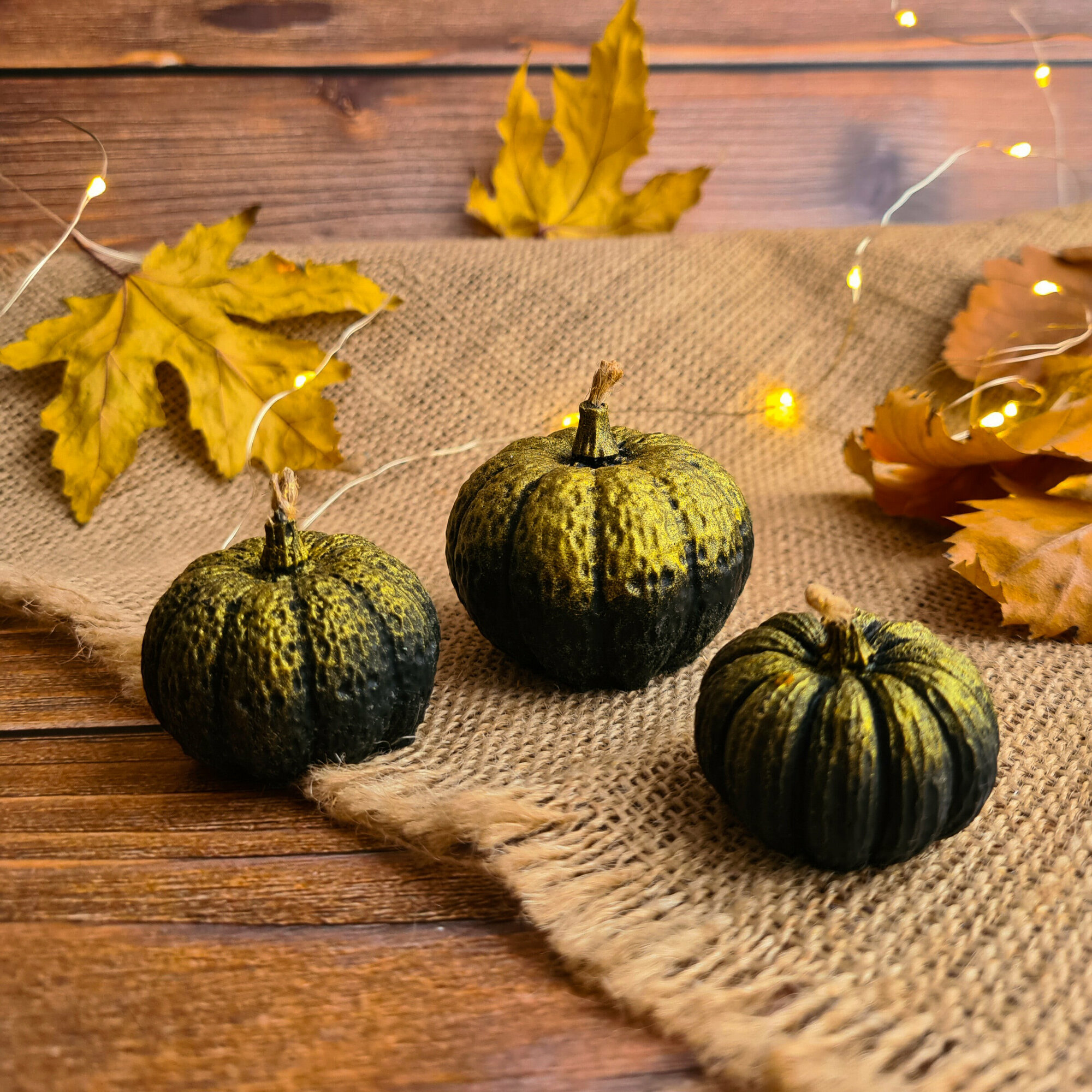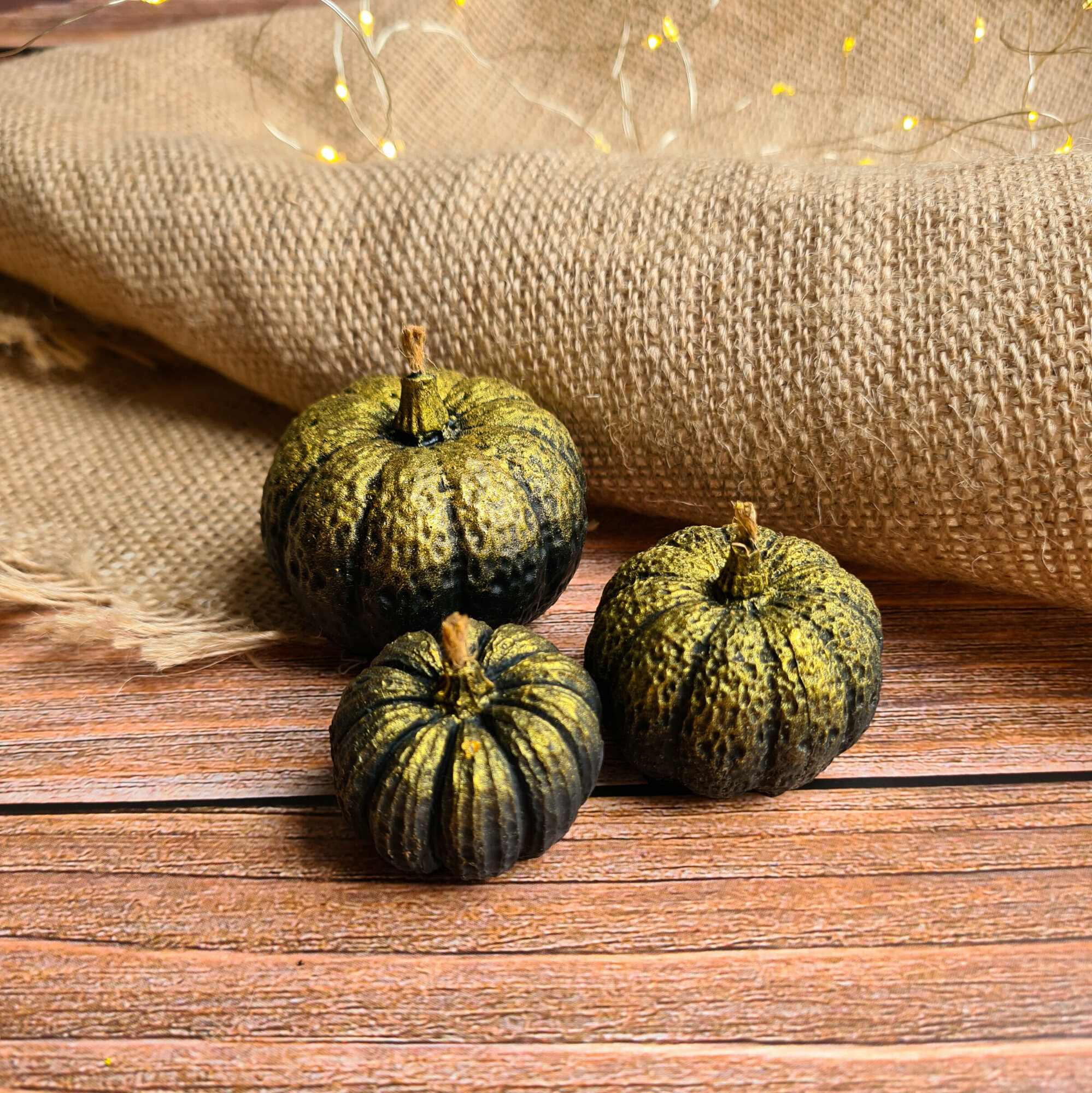 Набор свечей "Осенние Тыквы" черно-золотой, 3 свечи + Подарок интересное: