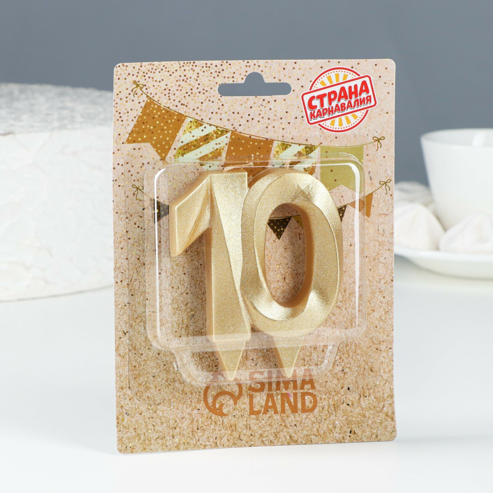 Свеча в торт юбилейная "Грань", цифра 10, золотой металлик, 6,5 см интересное: