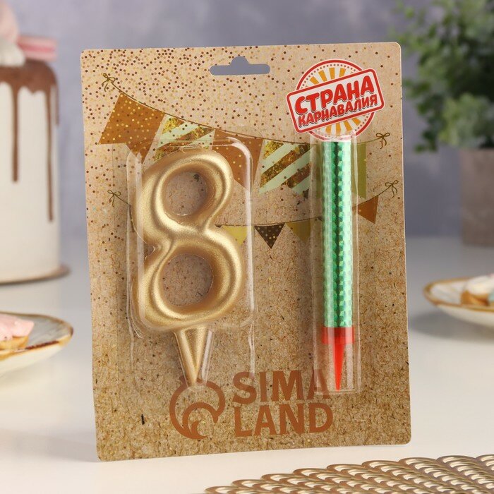 Набор Свеча для торта цифра 8 Гигант, золотая, с фонтаном, 12 см интересное: