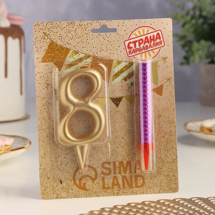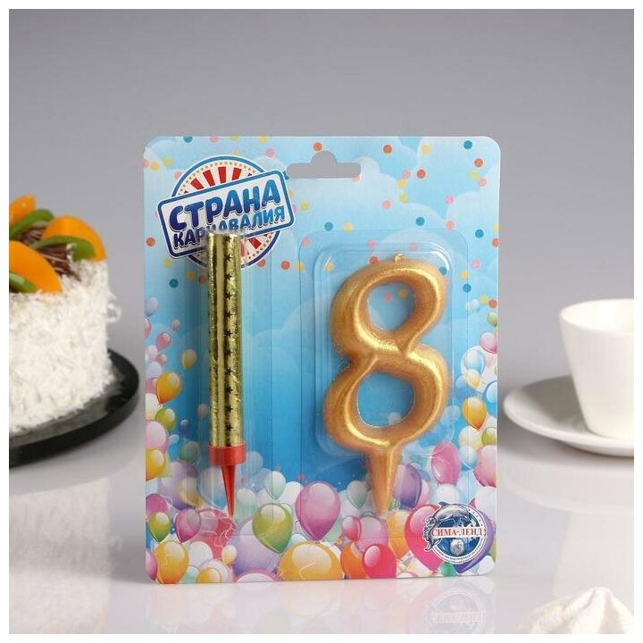 Купить Набор Свеча для торта цифра 8 Гигант, золотая, с фонтаном, 12 см