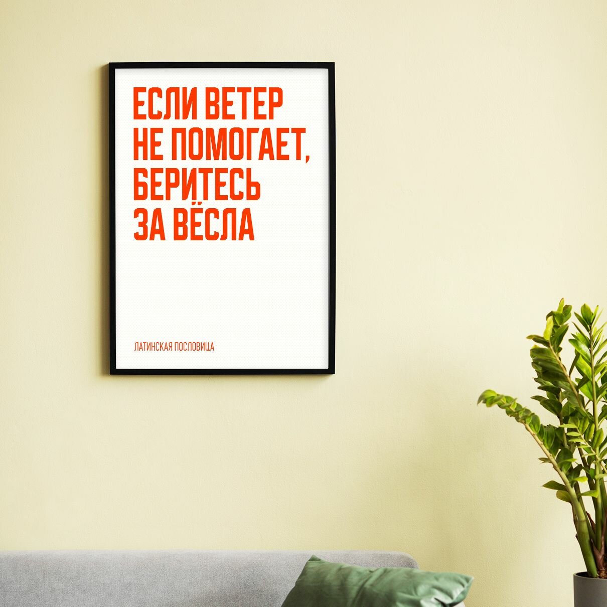 Купить Мотивационный постер с надписью "Если ветер не помогает, беритесь за вёсла" формата А3 (42 x 30 см) в тубусе