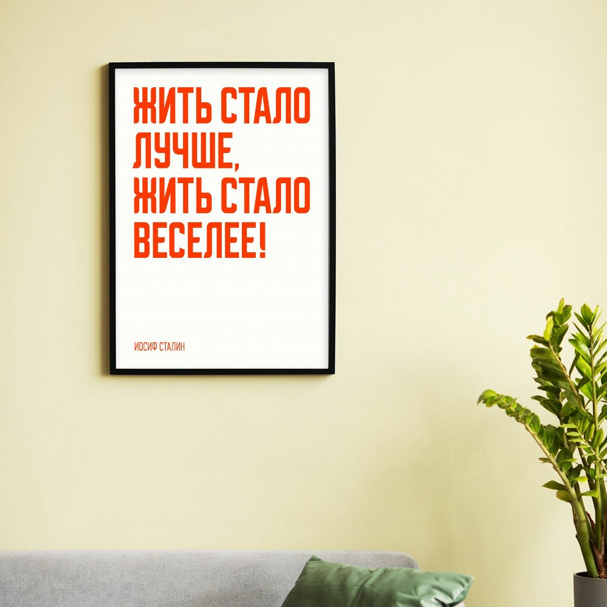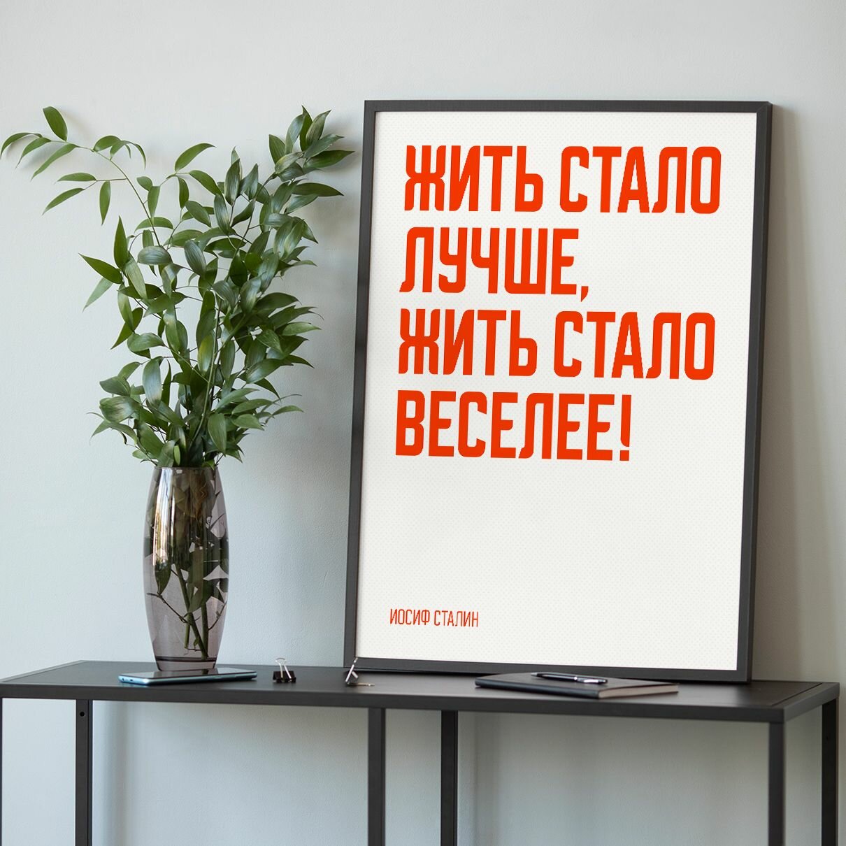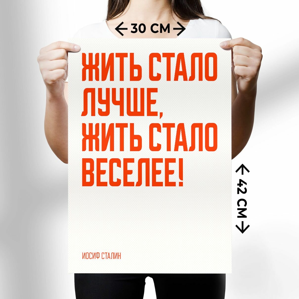 Купить Мотивационный постер с надписью "Жить стало лучше, жить стало веселее!" формата А3 (42 x 30 см) в тубусе