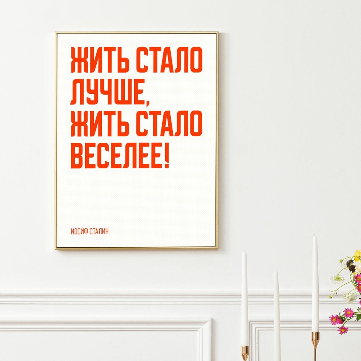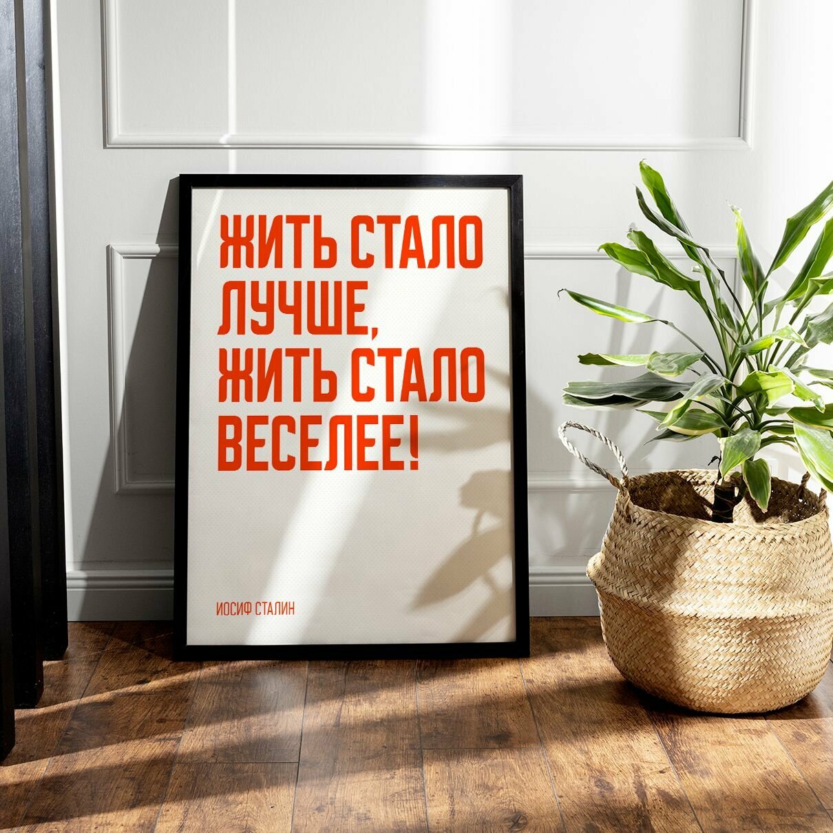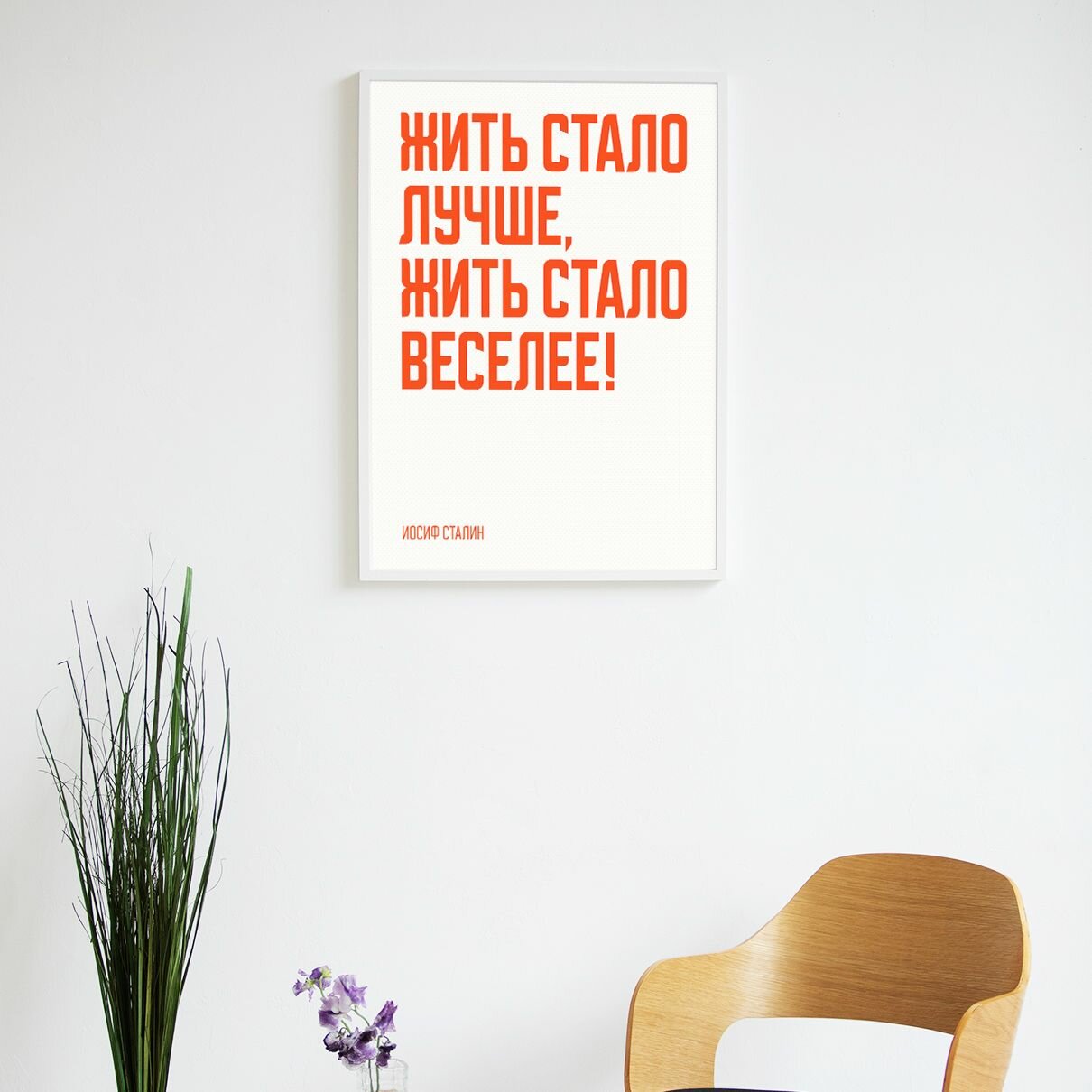 Купить Мотивационный постер с надписью "Жить стало лучше, жить стало веселее!" формата А3 (42 x 30 см) в тубусе