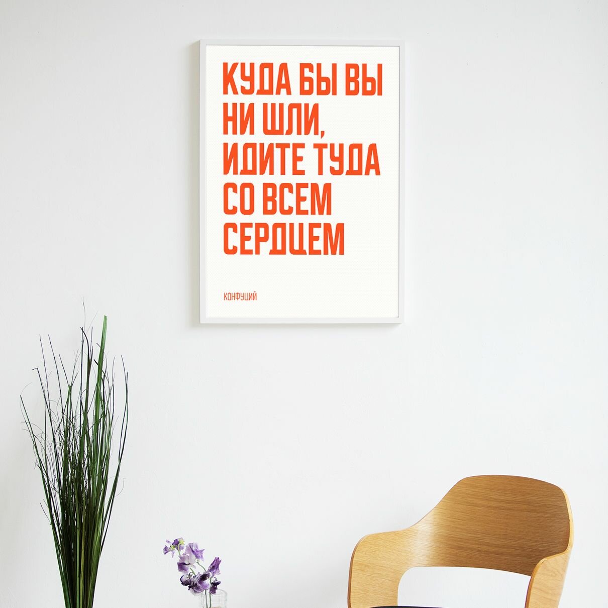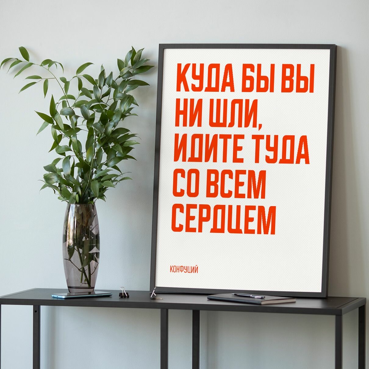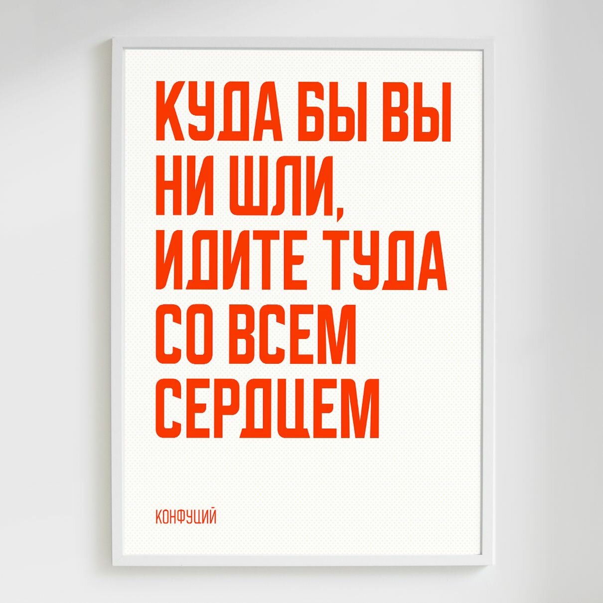 Купить Мотивационный постер с надписью "Куда бы вы ни шли, идите туда со всем сердцем" формата А3 (42 x 30 см) в тубусе