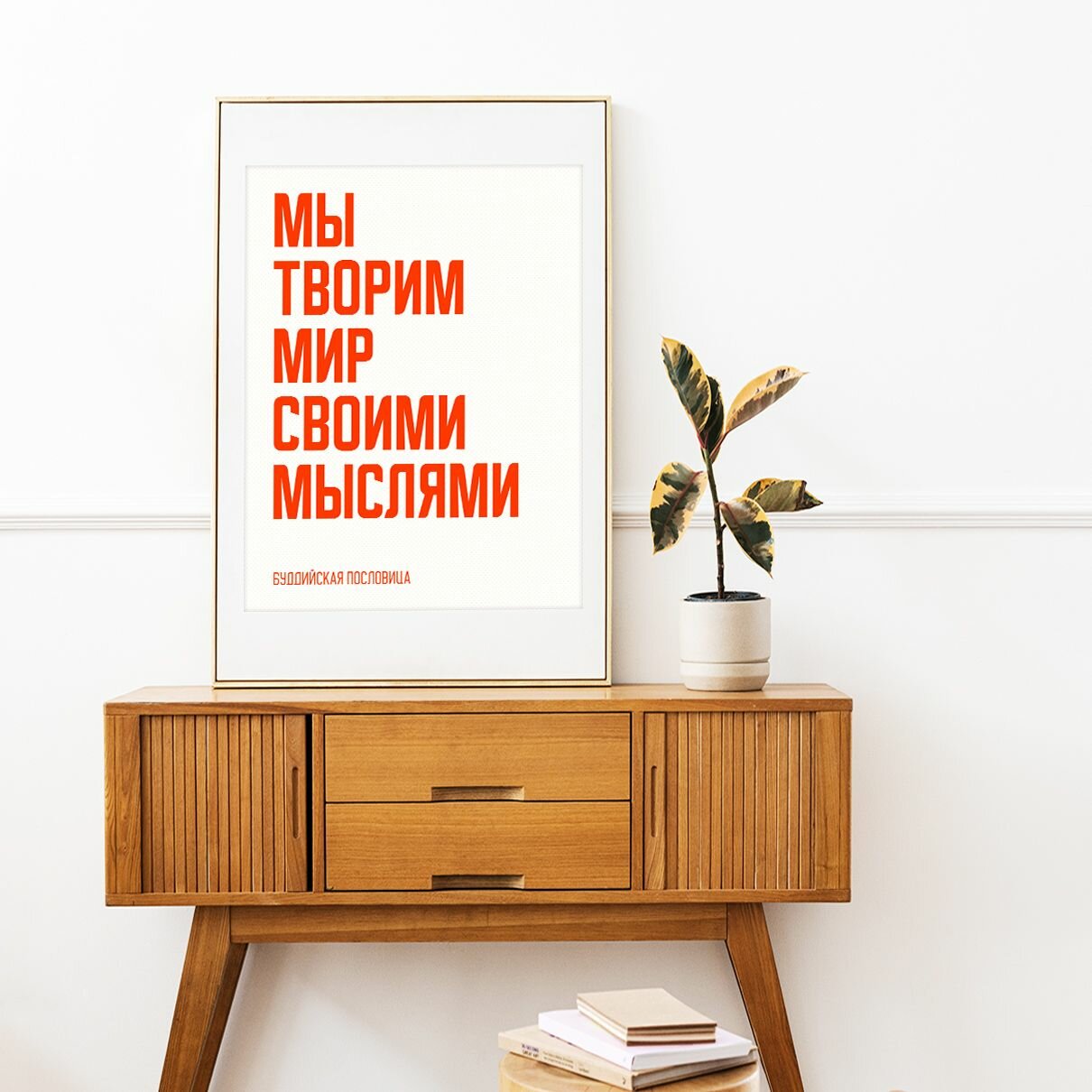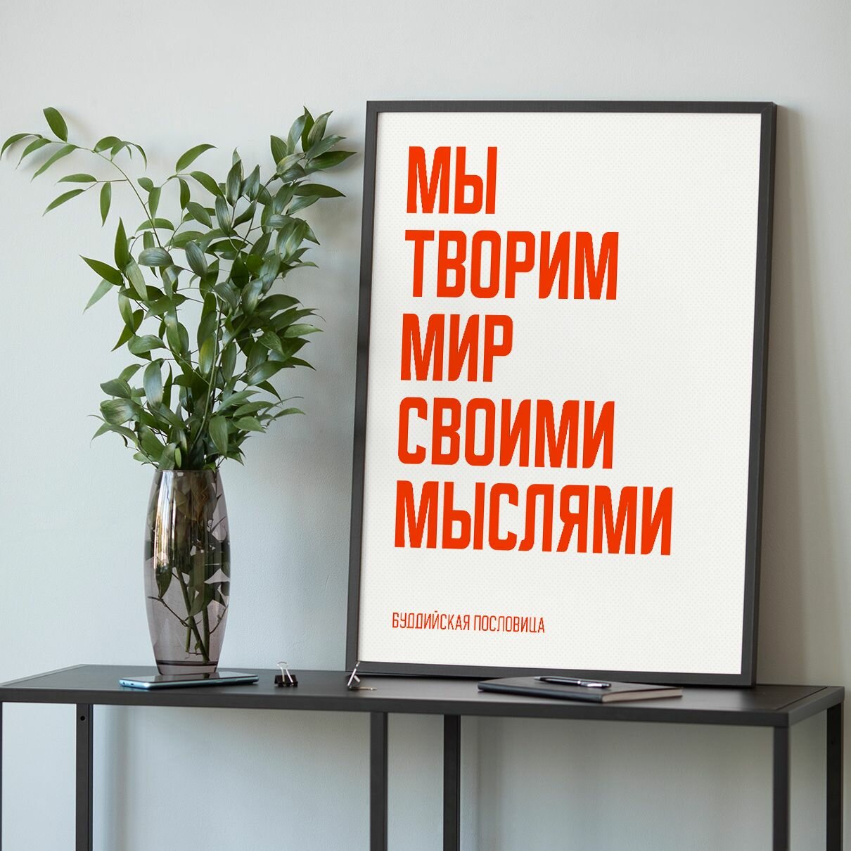 Купить Мотивационный постер с надписью МЫ творим МИР своими мыслями формата А3 (42 x 30 см) в тубусе