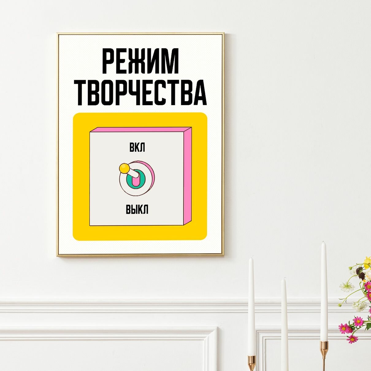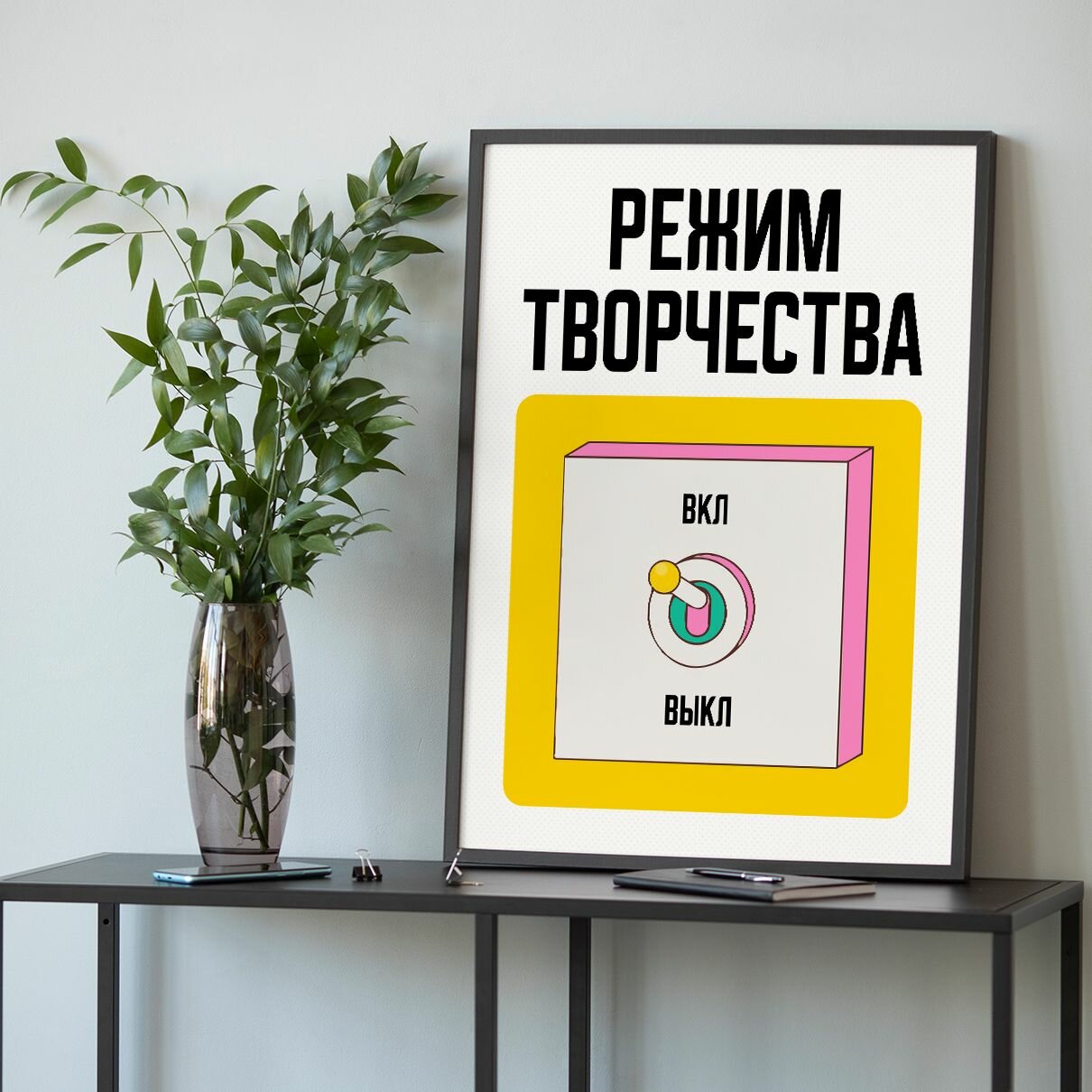 Купить Мотивационный постер с надписью режим творчества ВКЛ формата А3 (42 x 30 см) в тубусе