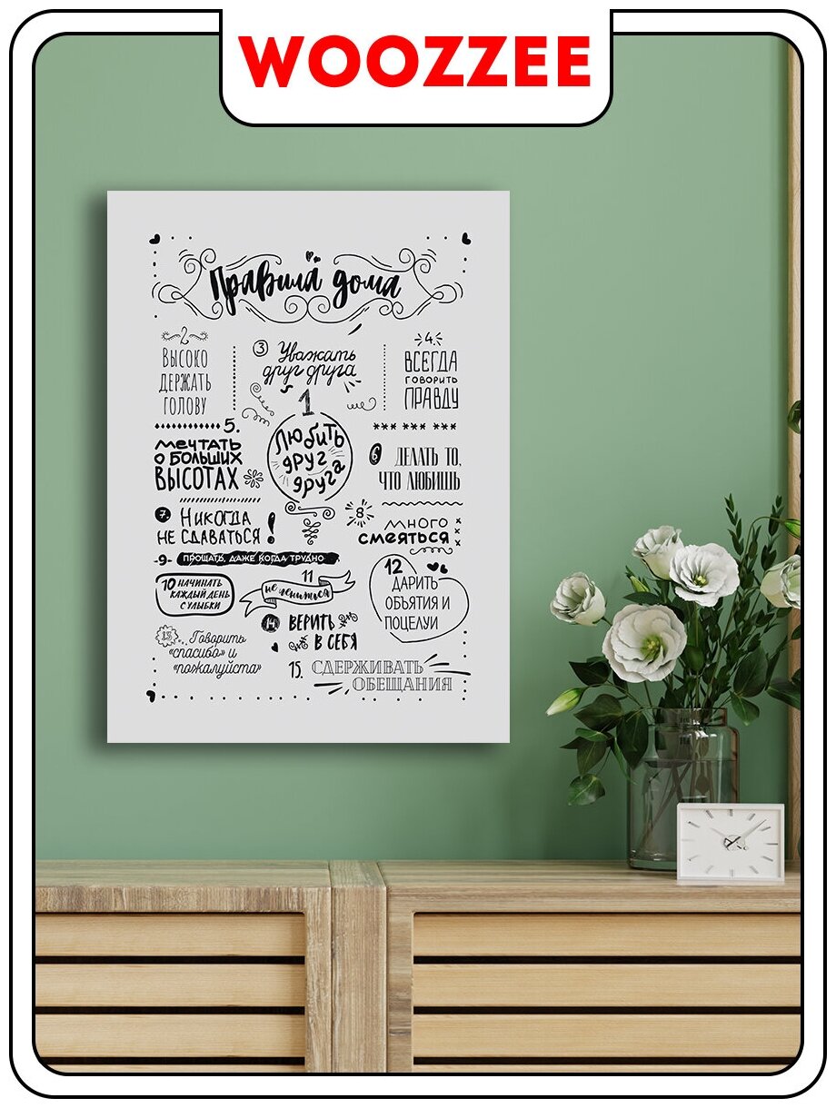 Картина интерьерная Woozzee "Правила дома" 40х30 см на виниловом холсте с деревянным подрамником / картина на холсте / картина интерьерная интересное: