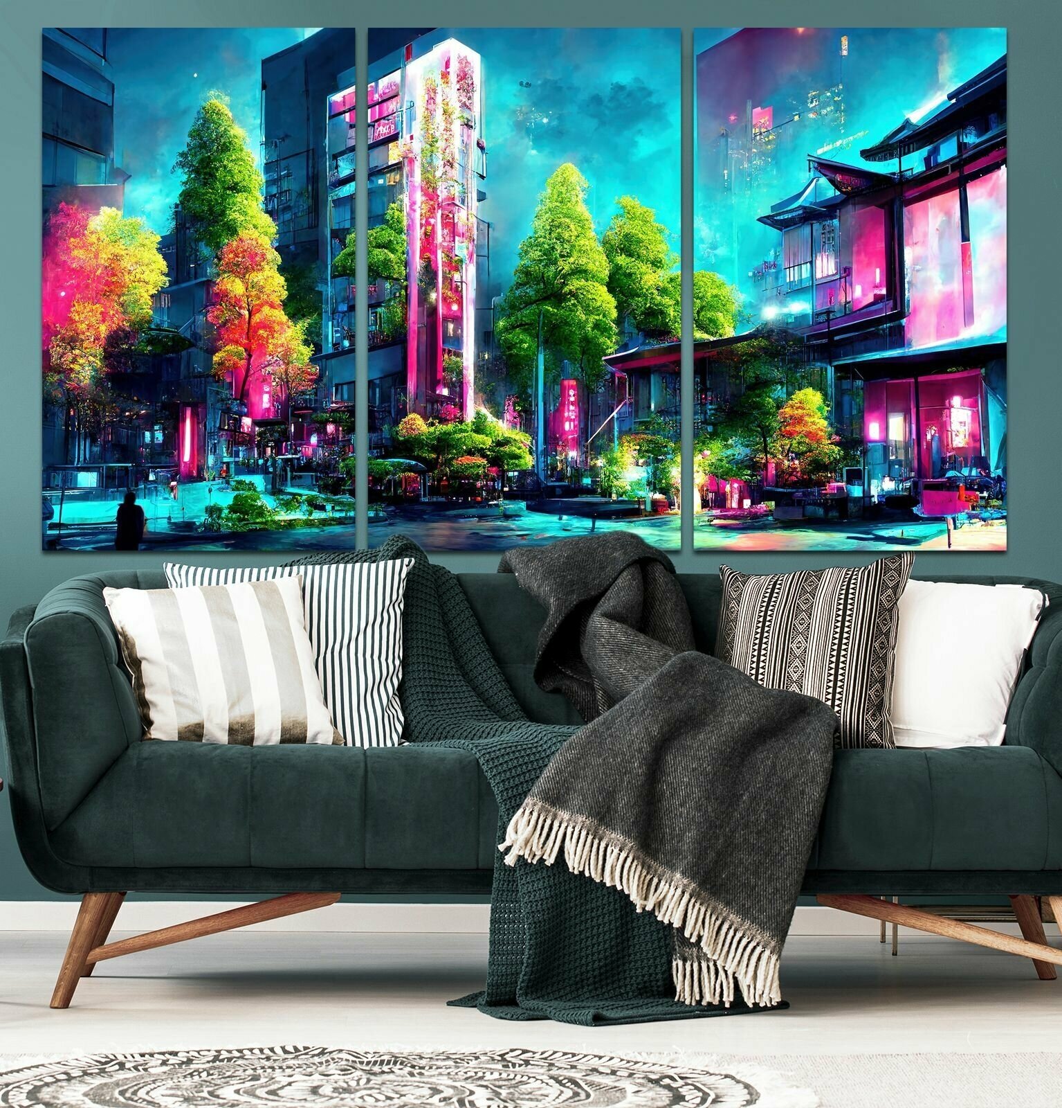 Купить Модульная картина для интерьера на стену "Неоновый город" 100х180см На холсте ТРБ-0271