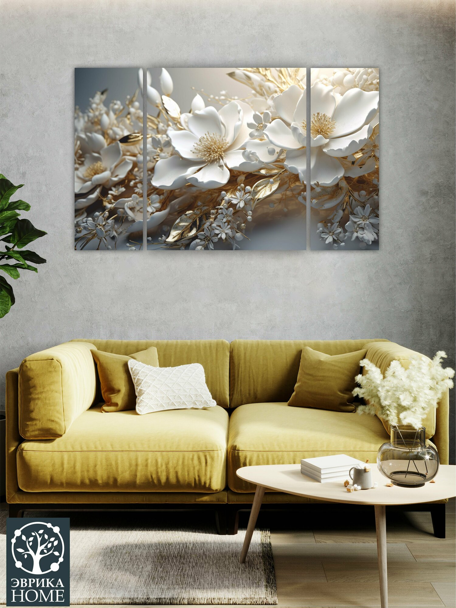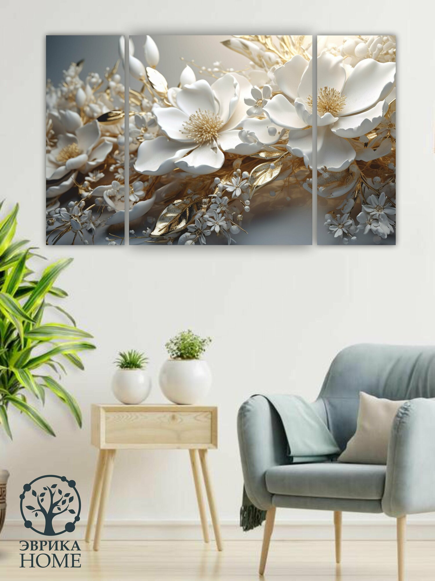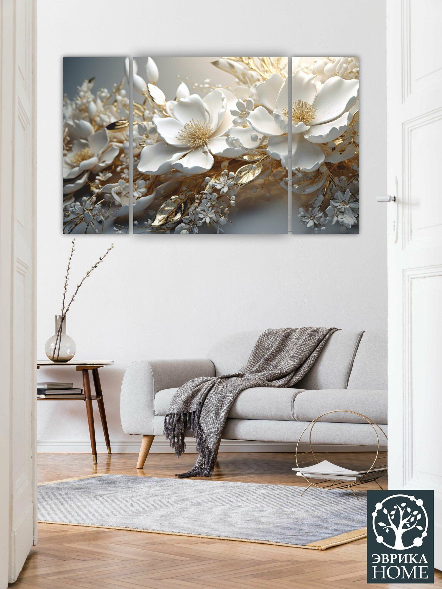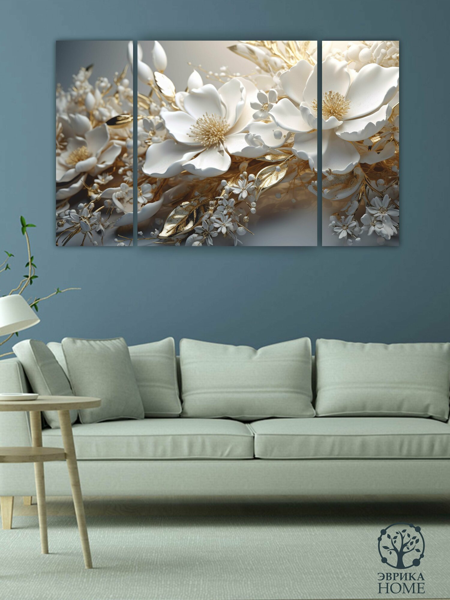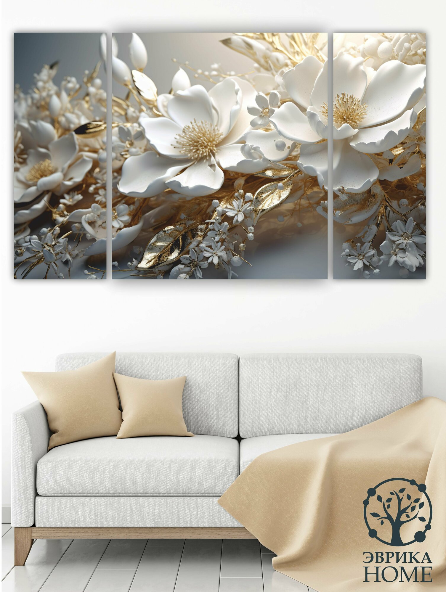 Картина модульная Цветы серебро и золото 80х140 см. интересное: