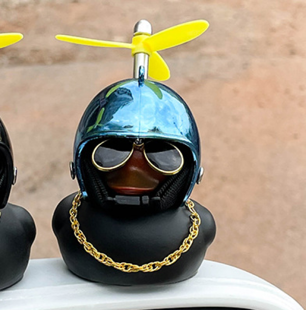 Уточка в шлеме, аксессуар в машину, черная с серебристым шлемом